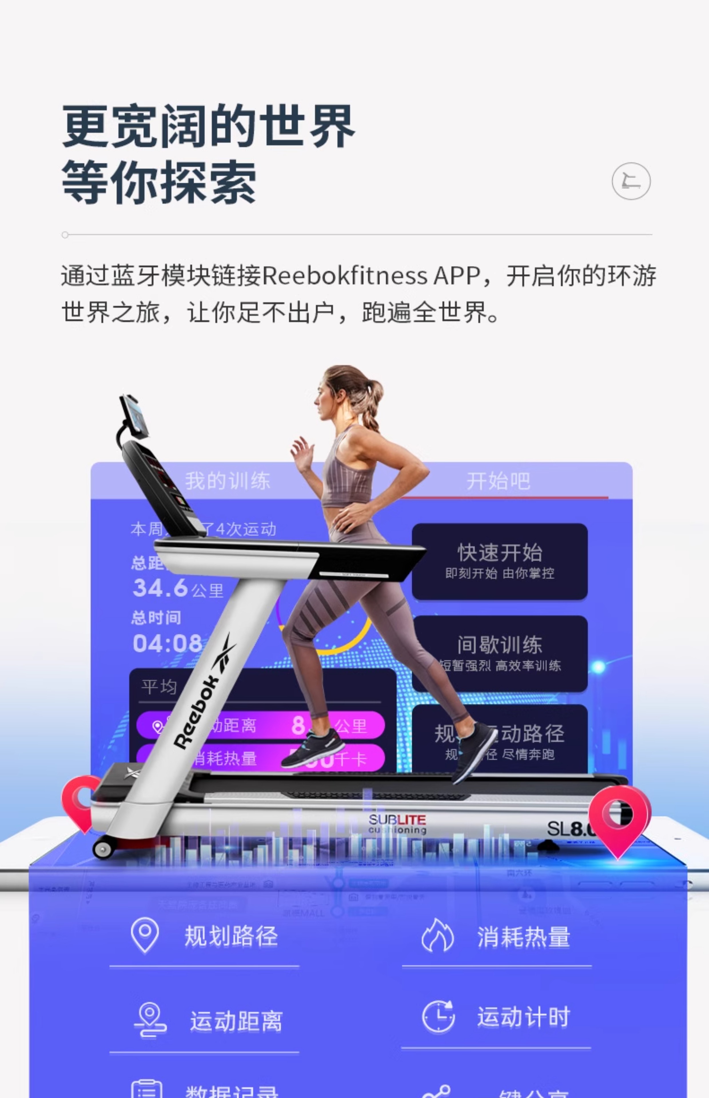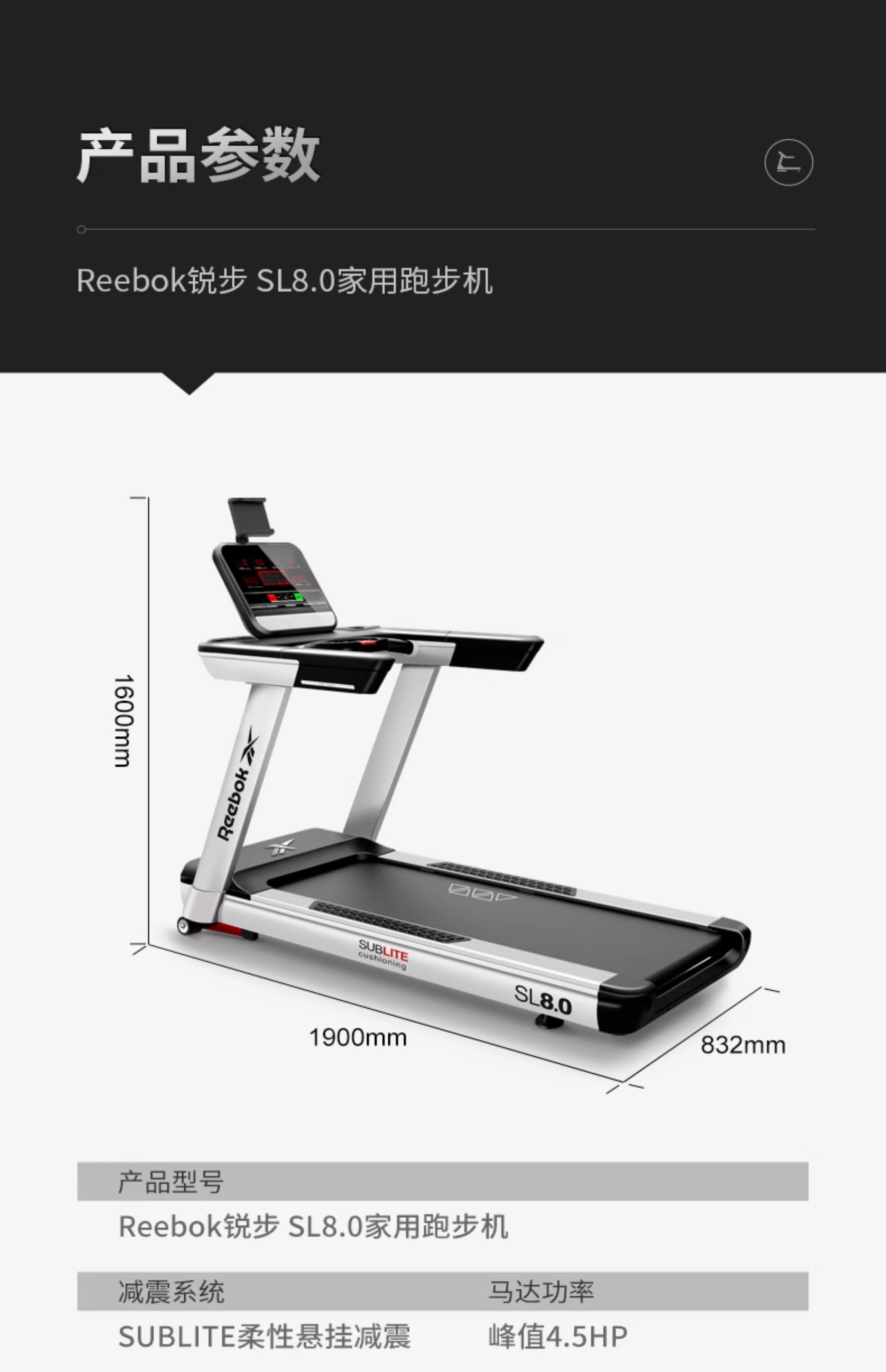 商品名称:锐步SL8.0跑步机家用款家庭大型高端爬坡商用健身房专用减肥室内