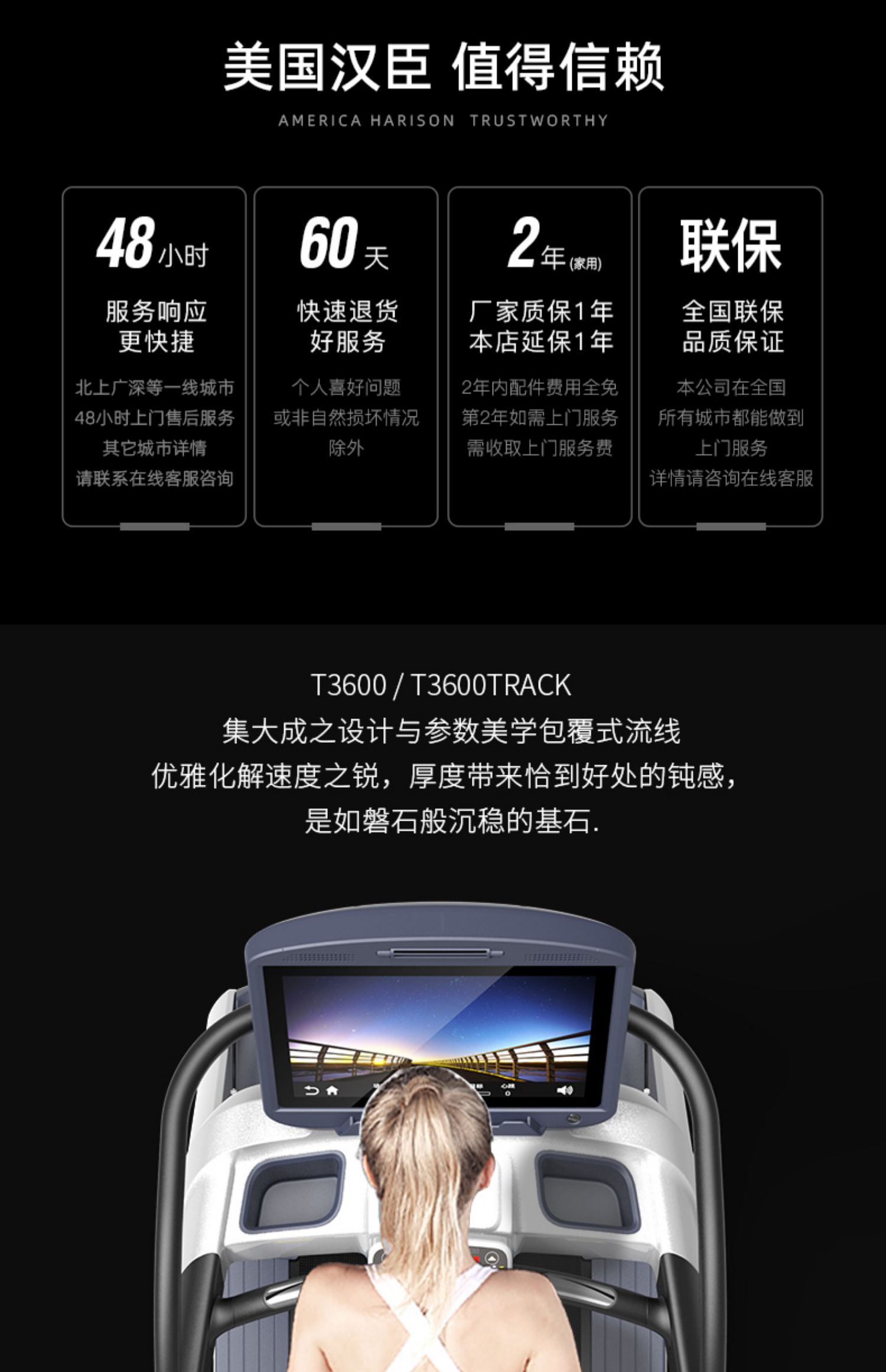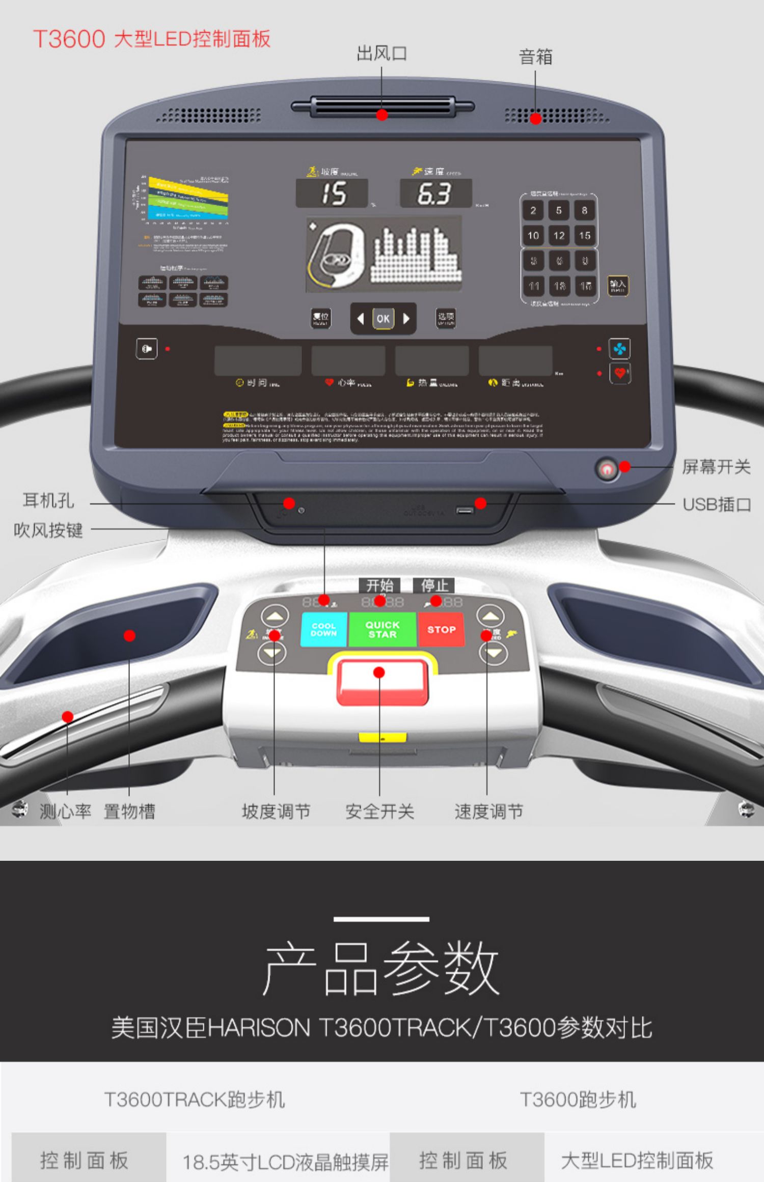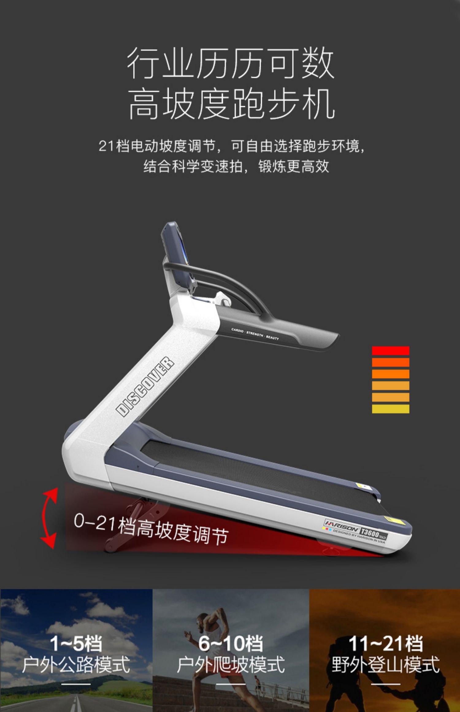 商品名称:美国汉臣商用大型登山跑步机智能健身房专用豪华静音健身器T3600