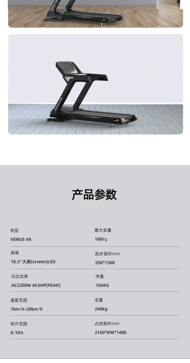 商品名称:正星V8健身房专用高端跑步机 超宽跑台交流电机大载重稳重跑步机
