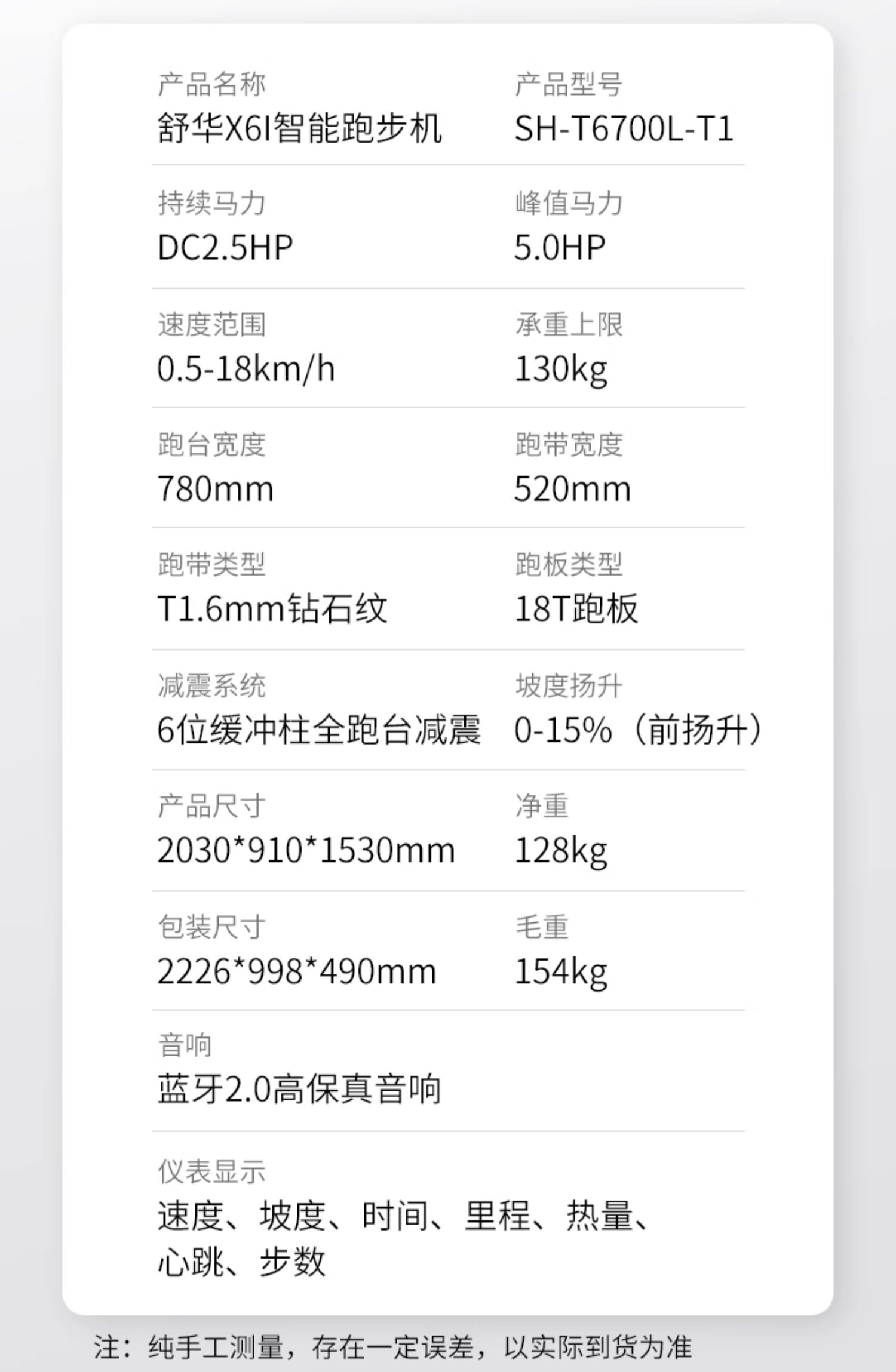 商品名称:舒华跑步机家用款小型高端静音室内支持鸿蒙健身器材官方旗舰X6i