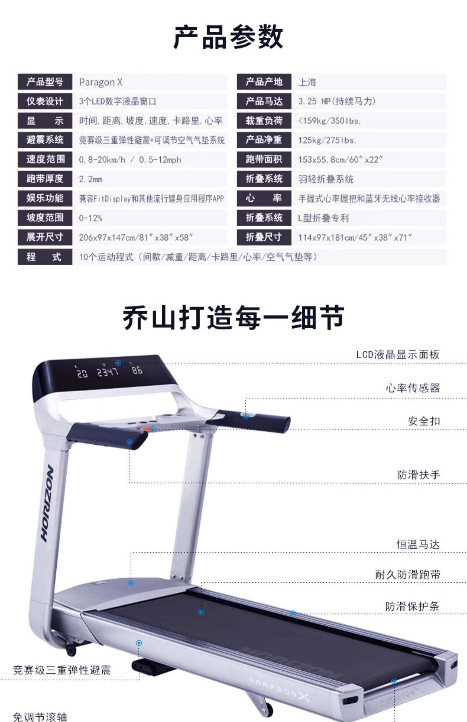 商品名称:乔山Paragon X跑步机家用款静音豪华轻商健身房专用减肥健身器材