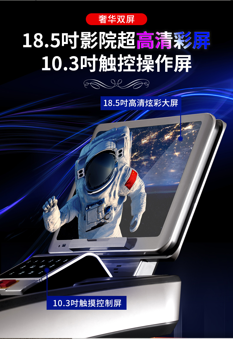 【华贵版触控彩屏-闪耀银】18.5吋广角高清屏+20档坡度/速度调节