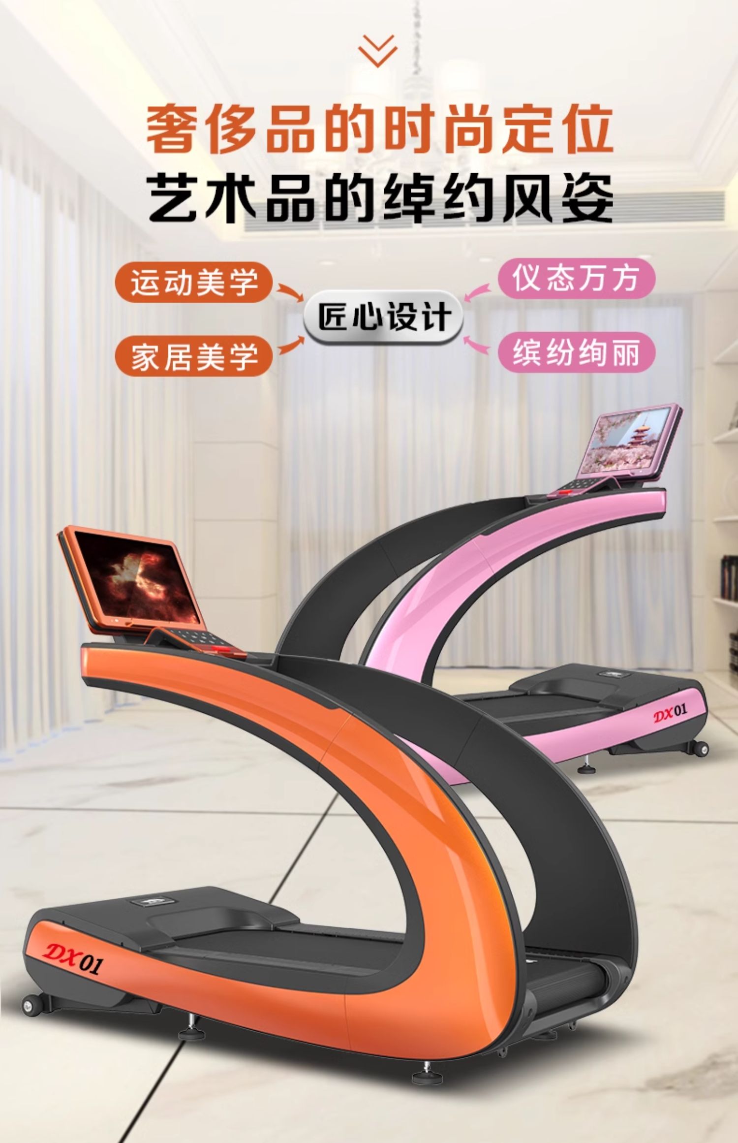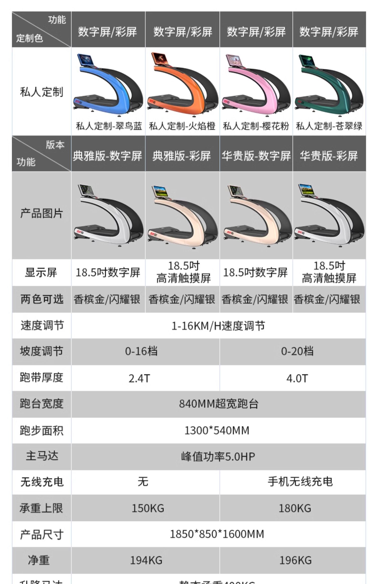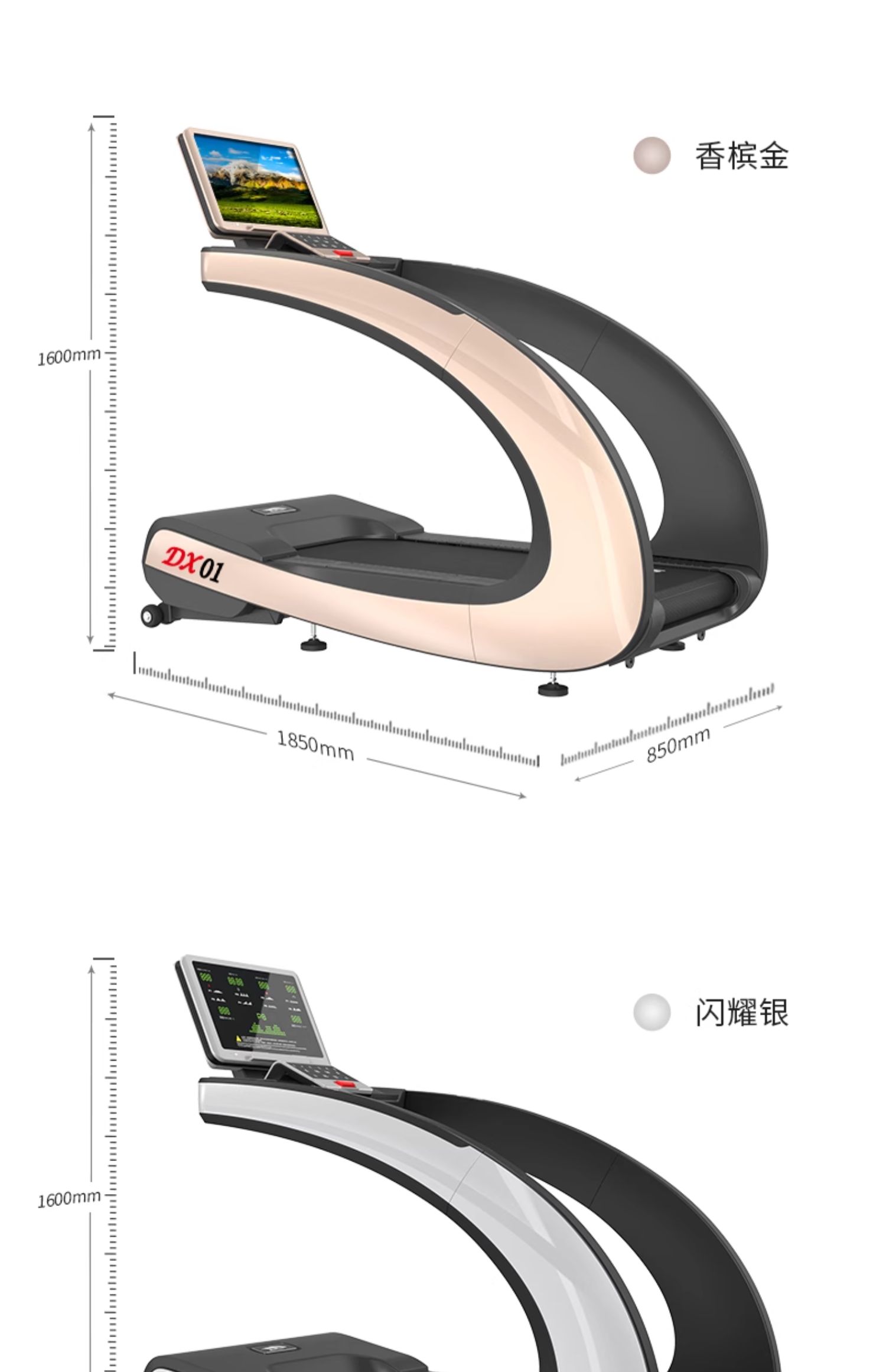 【典雅版数字屏-香槟金】840MM超宽跑台+汽车烤漆工艺