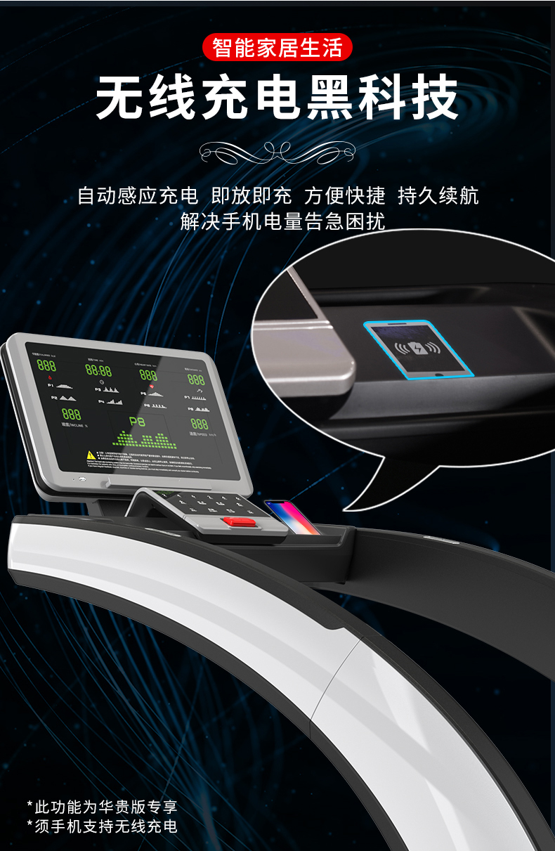 【华贵版数字屏-闪耀银】手机无线充电+4.0T加厚吸震跑带