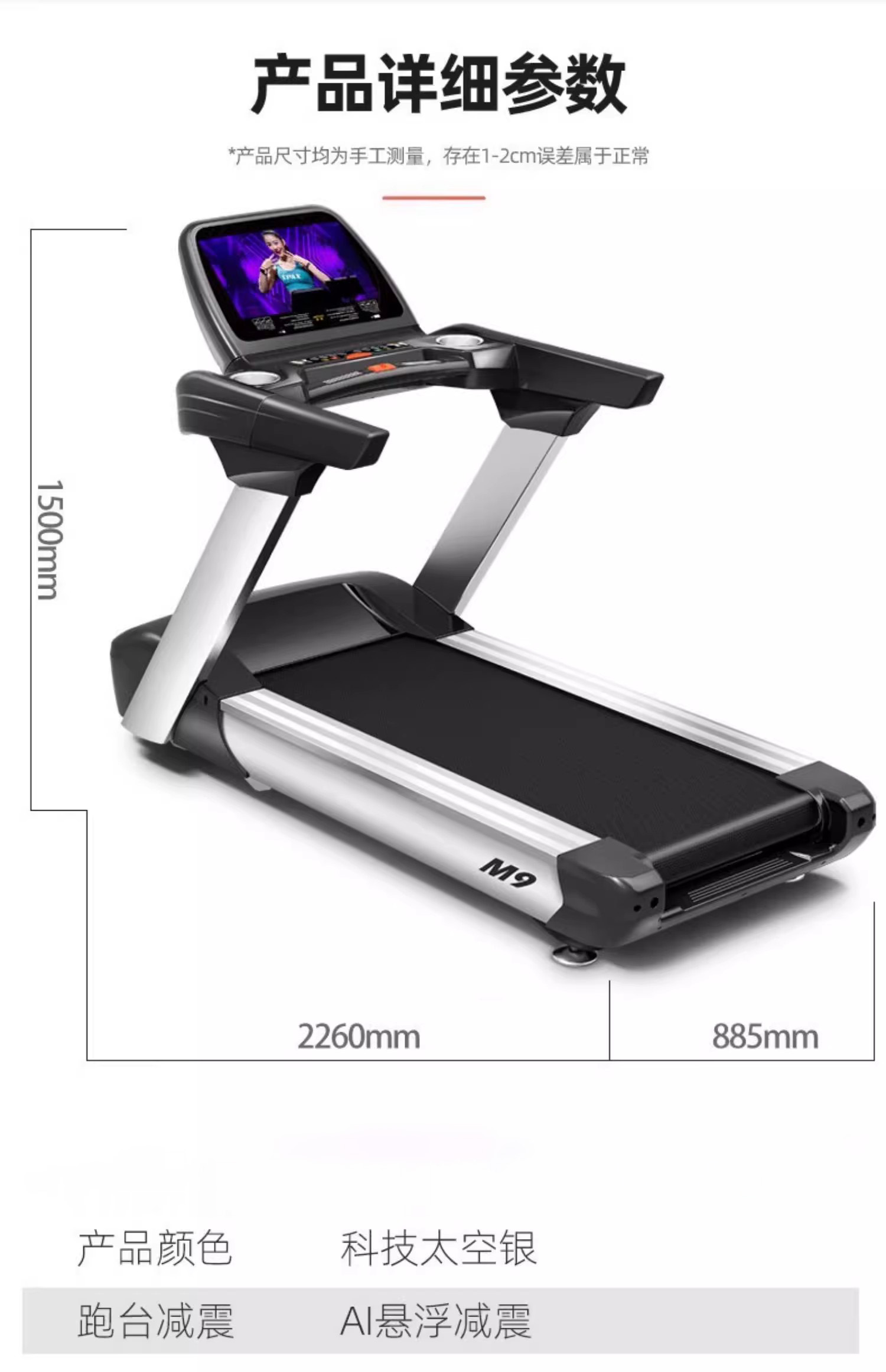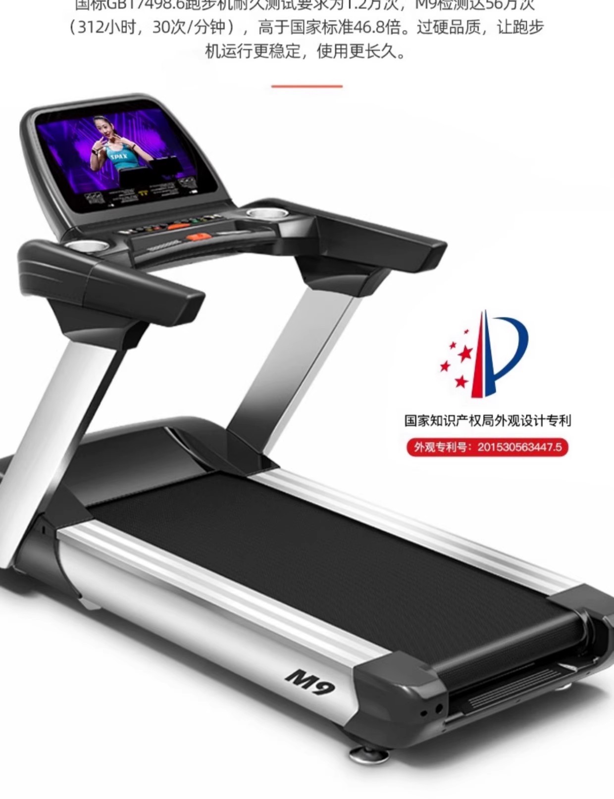 商品名称:智能商用跑步机家用款电动高端超静音大型健身房专用跑步机M9