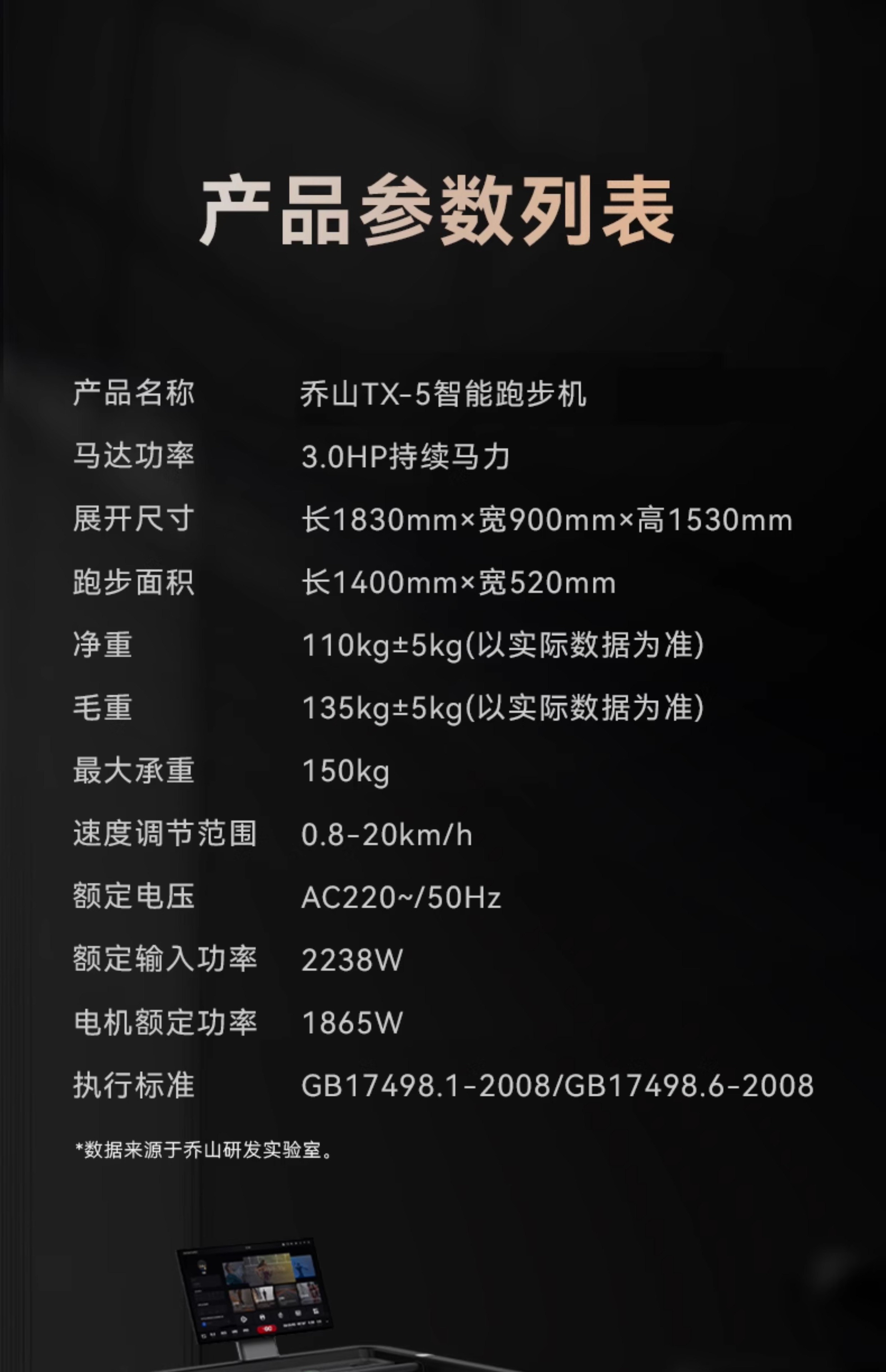 商品名称:乔山TX-5跑步机家用款可折叠室内静音减震华为智选专业高端跑步机