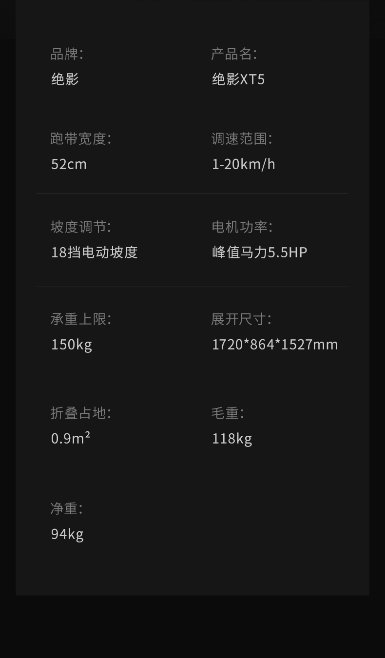 商品名称:绝影高端智能家用跑步机超静音减震坡度大型商器材健身房专用XT5