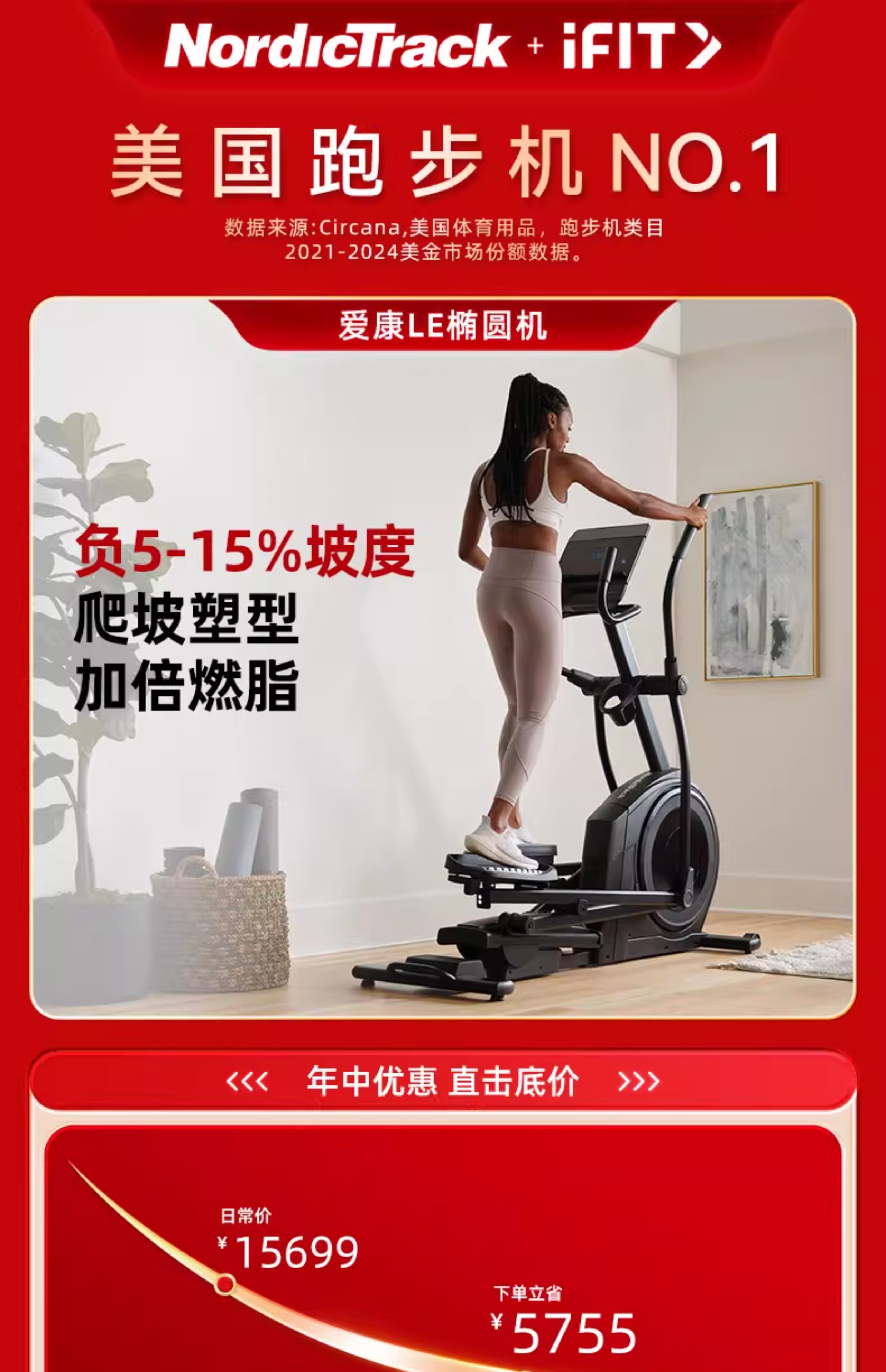 爱康椭圆机家用室内智能太空漫步机阻力运动健身器NordicTrackALE