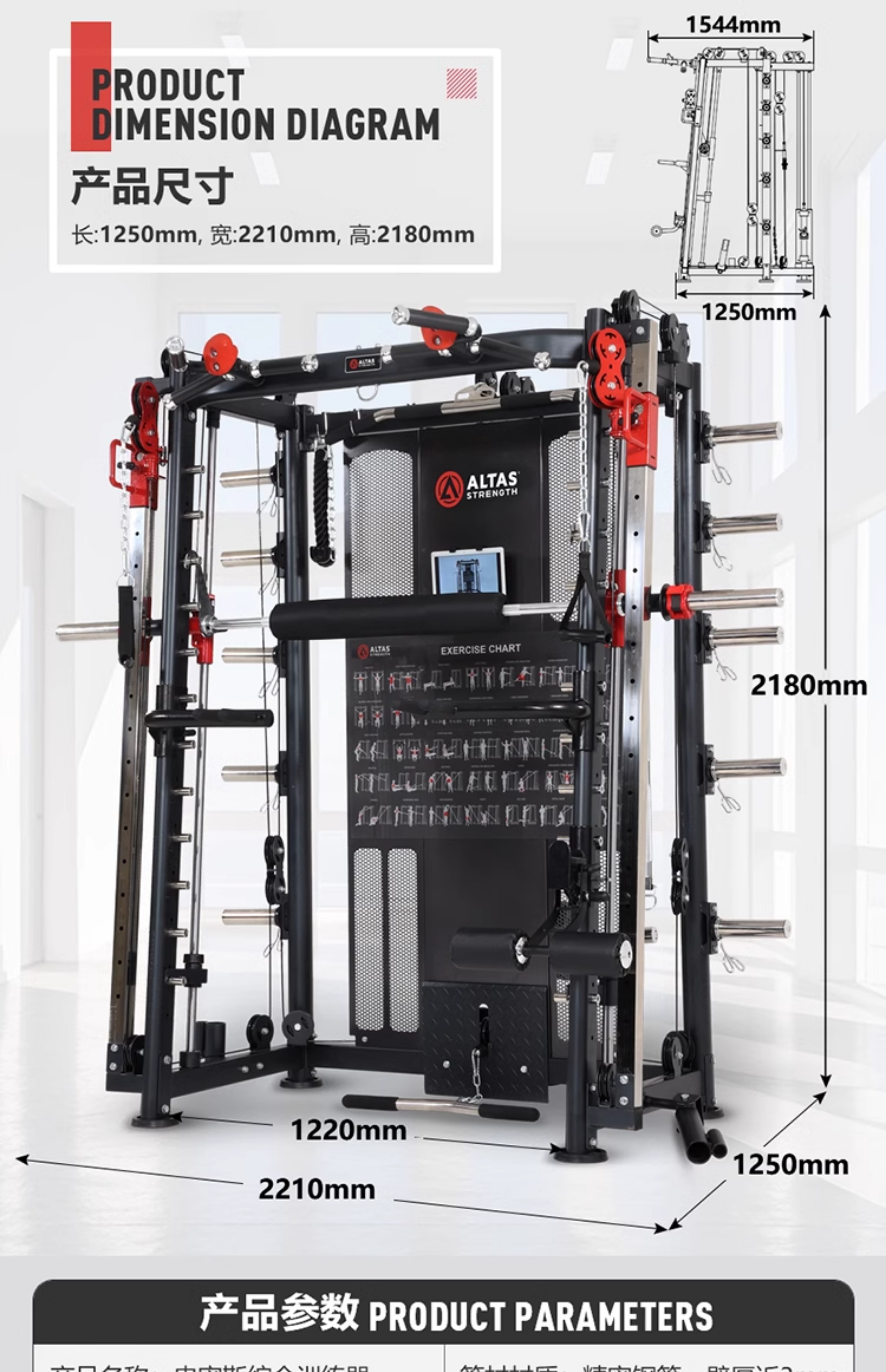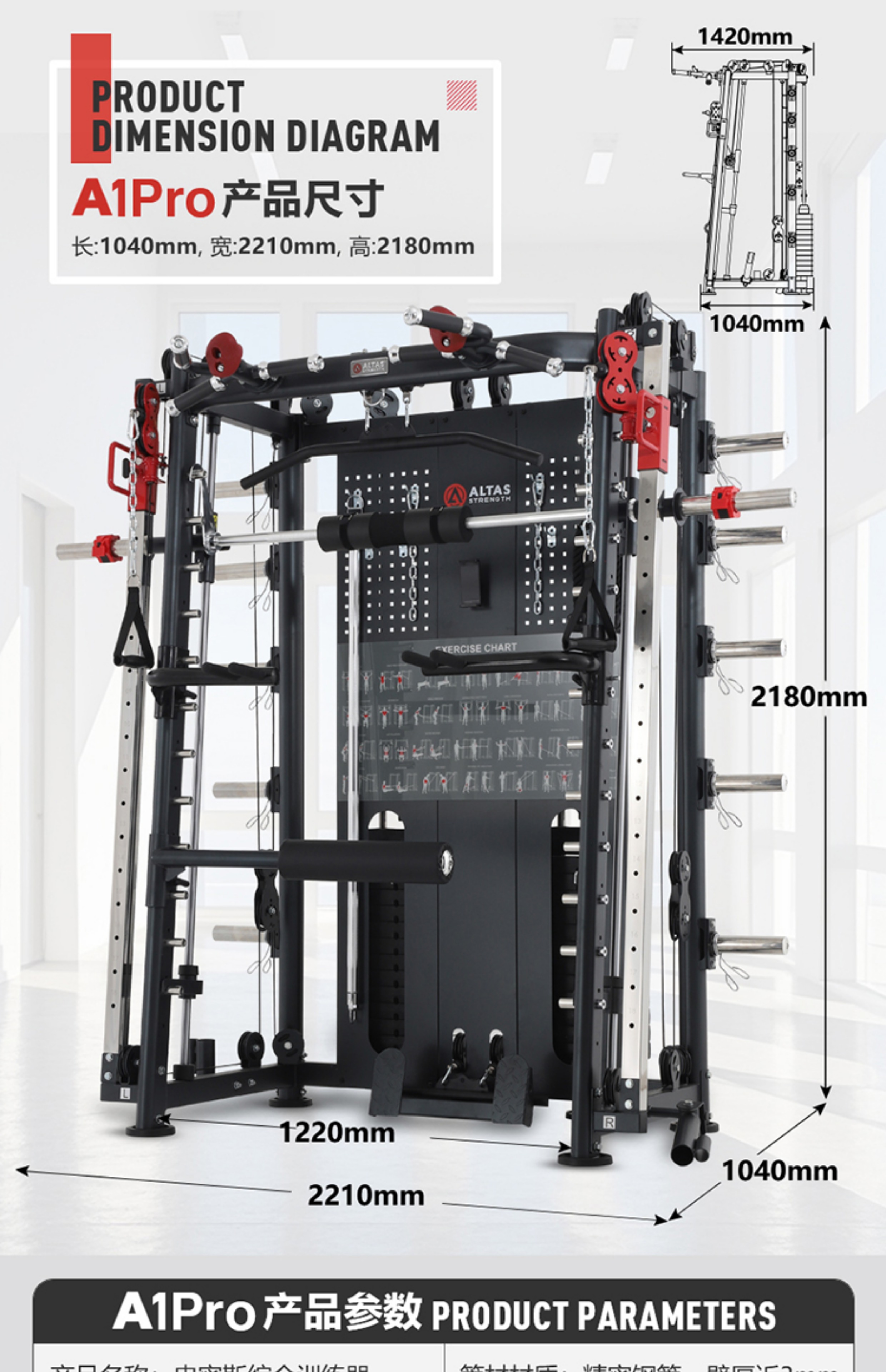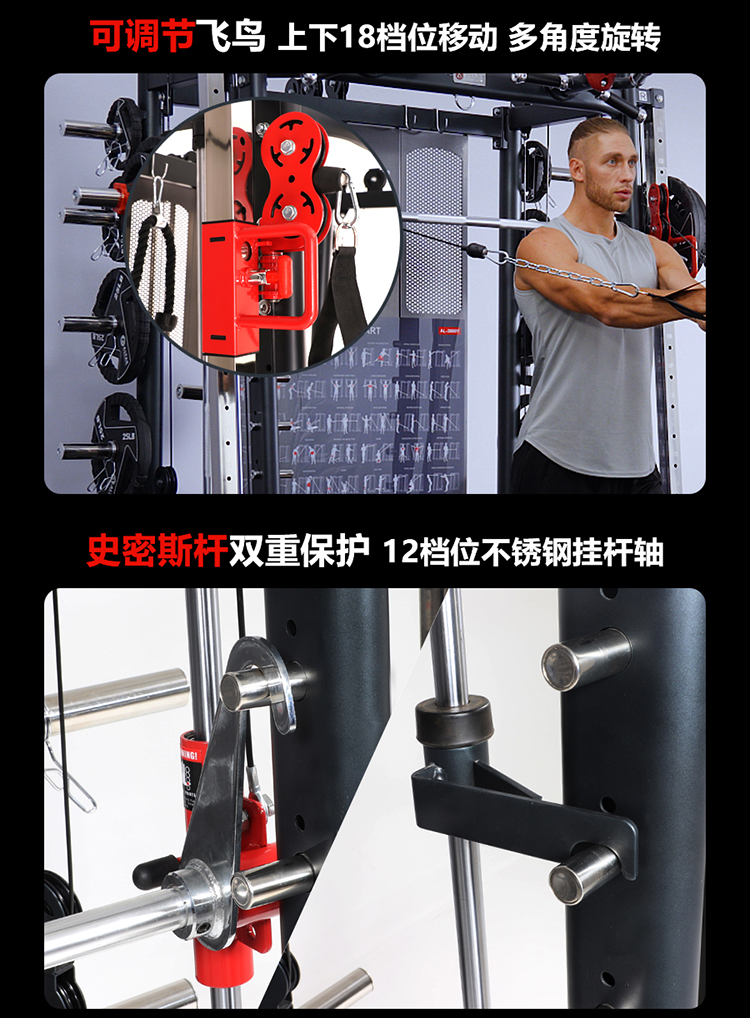 商品名称:史密斯机龙门架家用健身房器械澳特斯A1多功能运动器材综合训练器