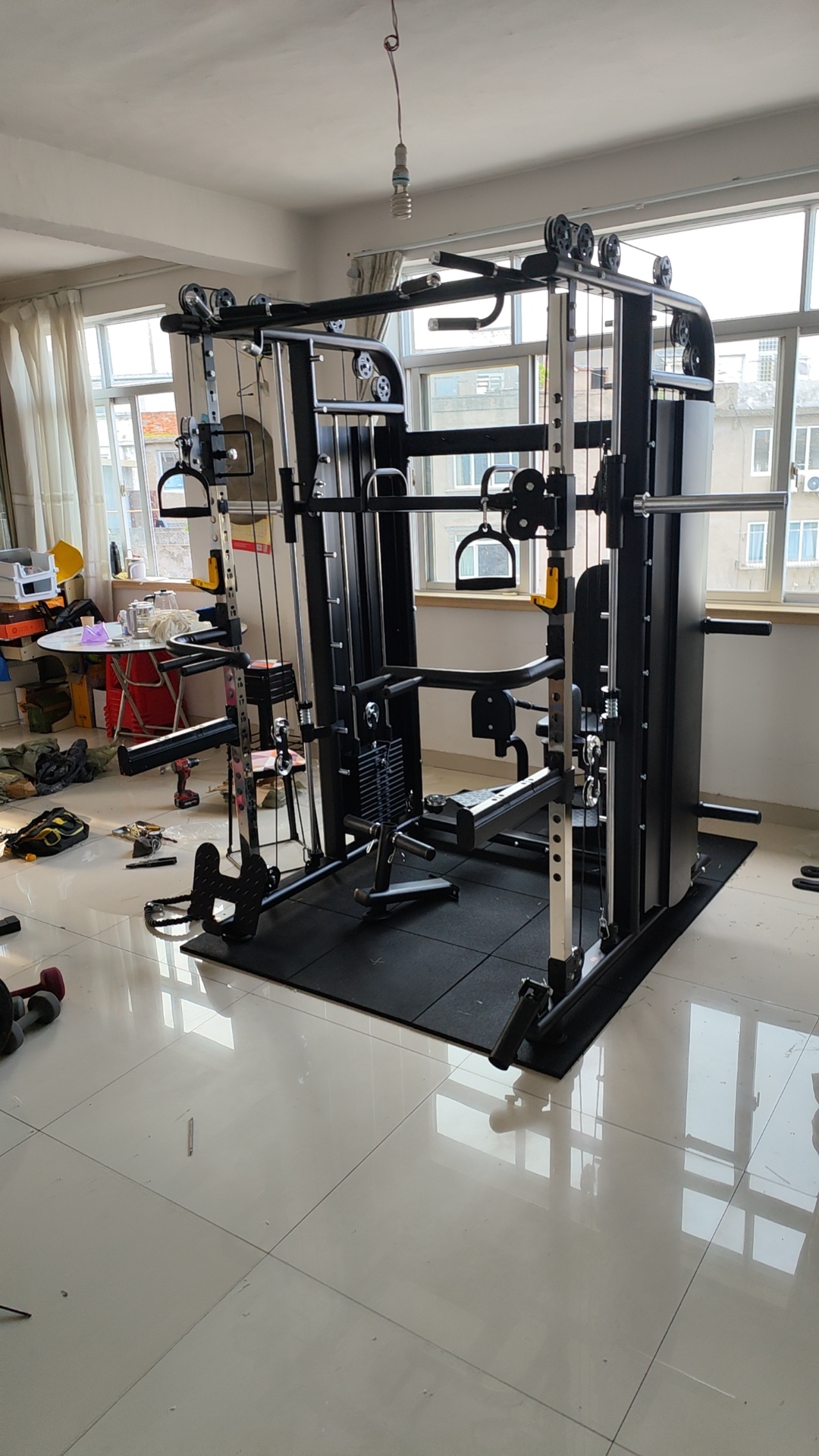 淘宝购物最贵的物品。装配师傅今天给装好的,看着很精致,比健身房的器械还要好。装配师傅说这个是他装这么多健身器材里最高端最结实的一个。