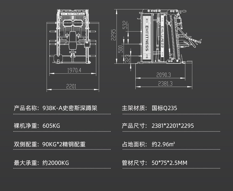 938K裸机,助力75度专业史密斯/140kg精钢配重