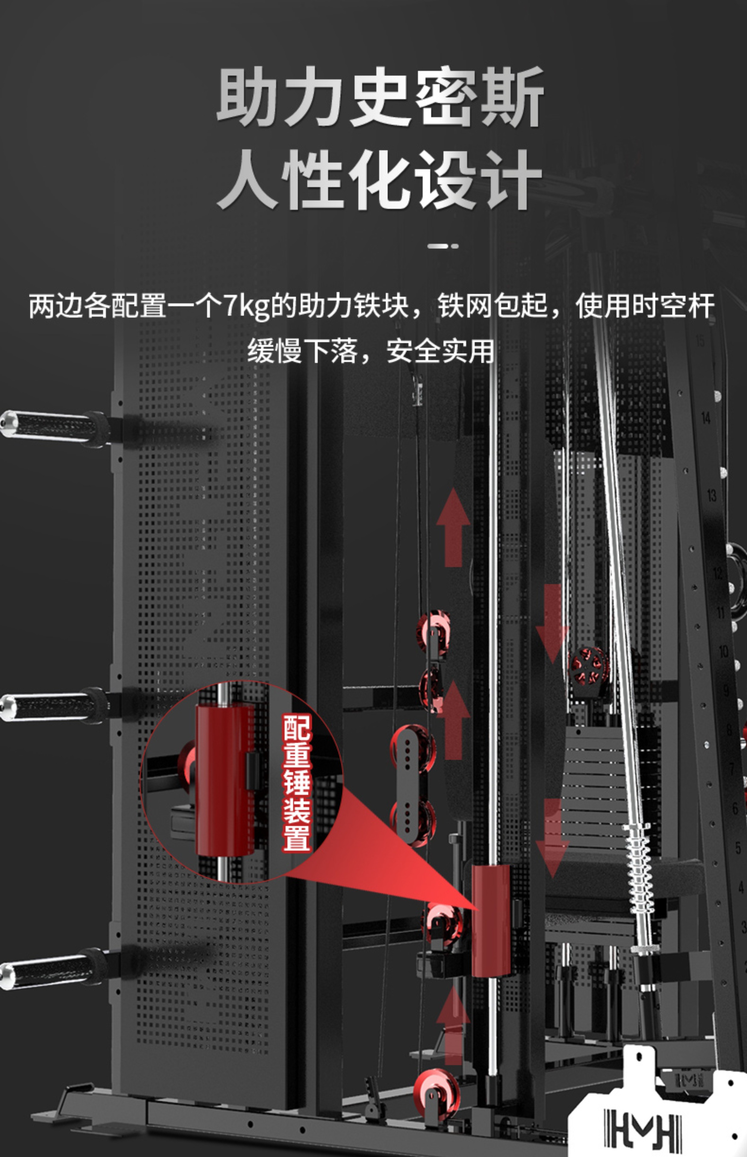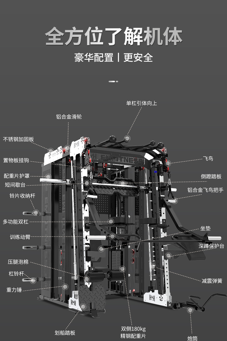 938K-A裸机,助力75度专业史密斯/180kg精钢配重,升级铝合金滑轮,铝合金把手,增加推胸动臂套装