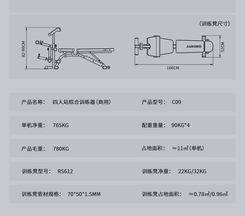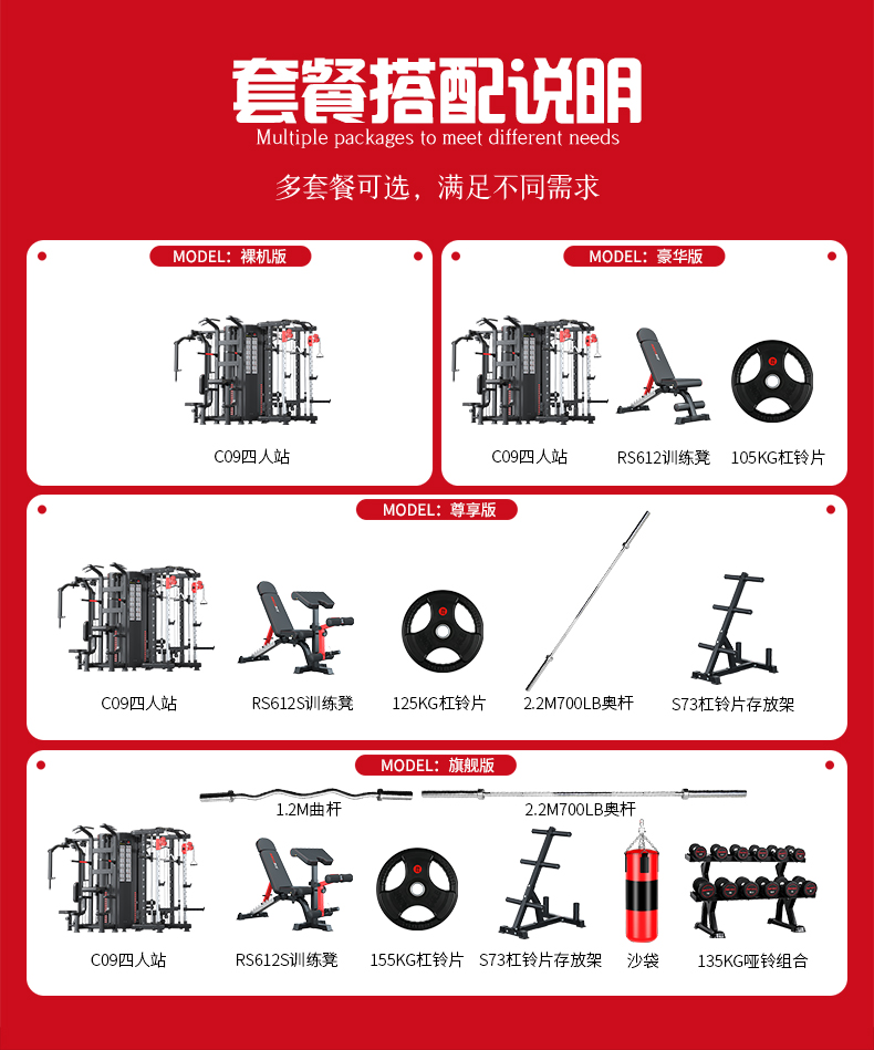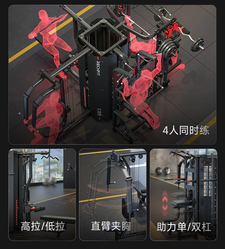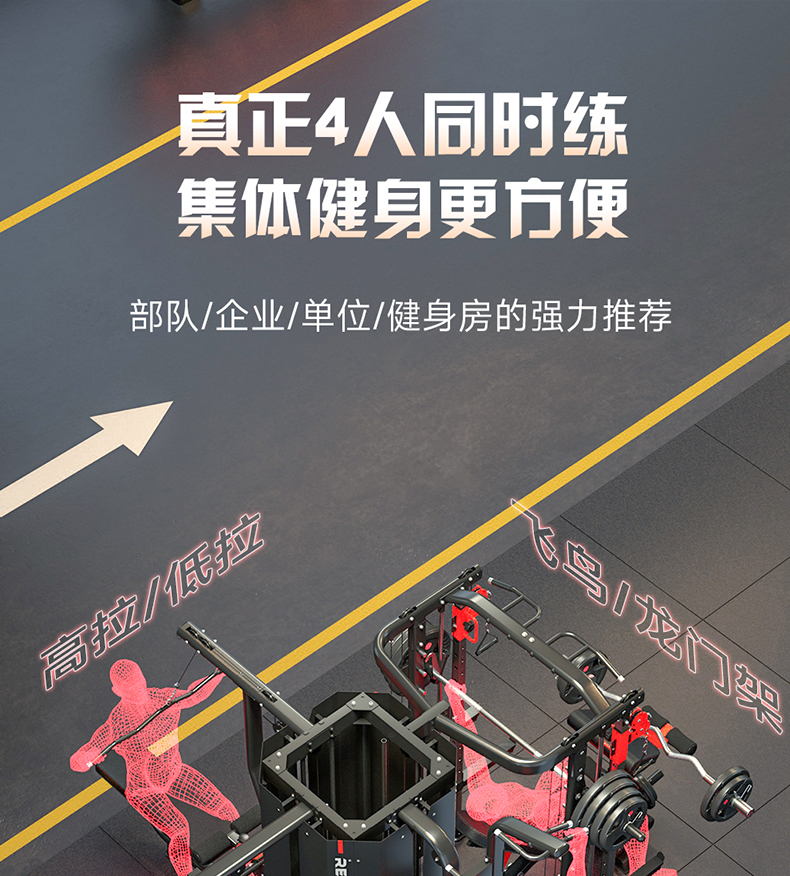商品名称:健身房器械 四人站综合训练器材 商用多功能史密斯机小飞鸟龙门架