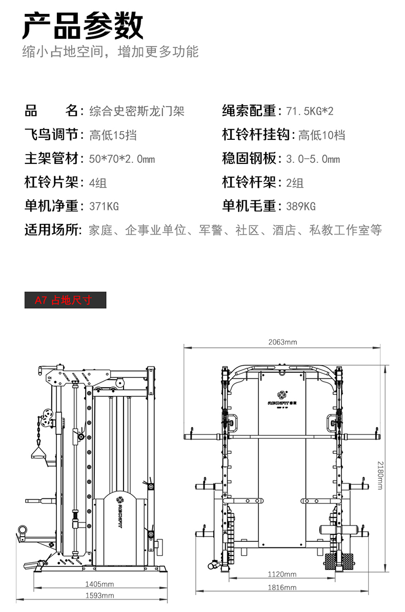 商品名称:睿致 史密斯机综合训练器 健身器材龙门架多功能一体家用套装组合