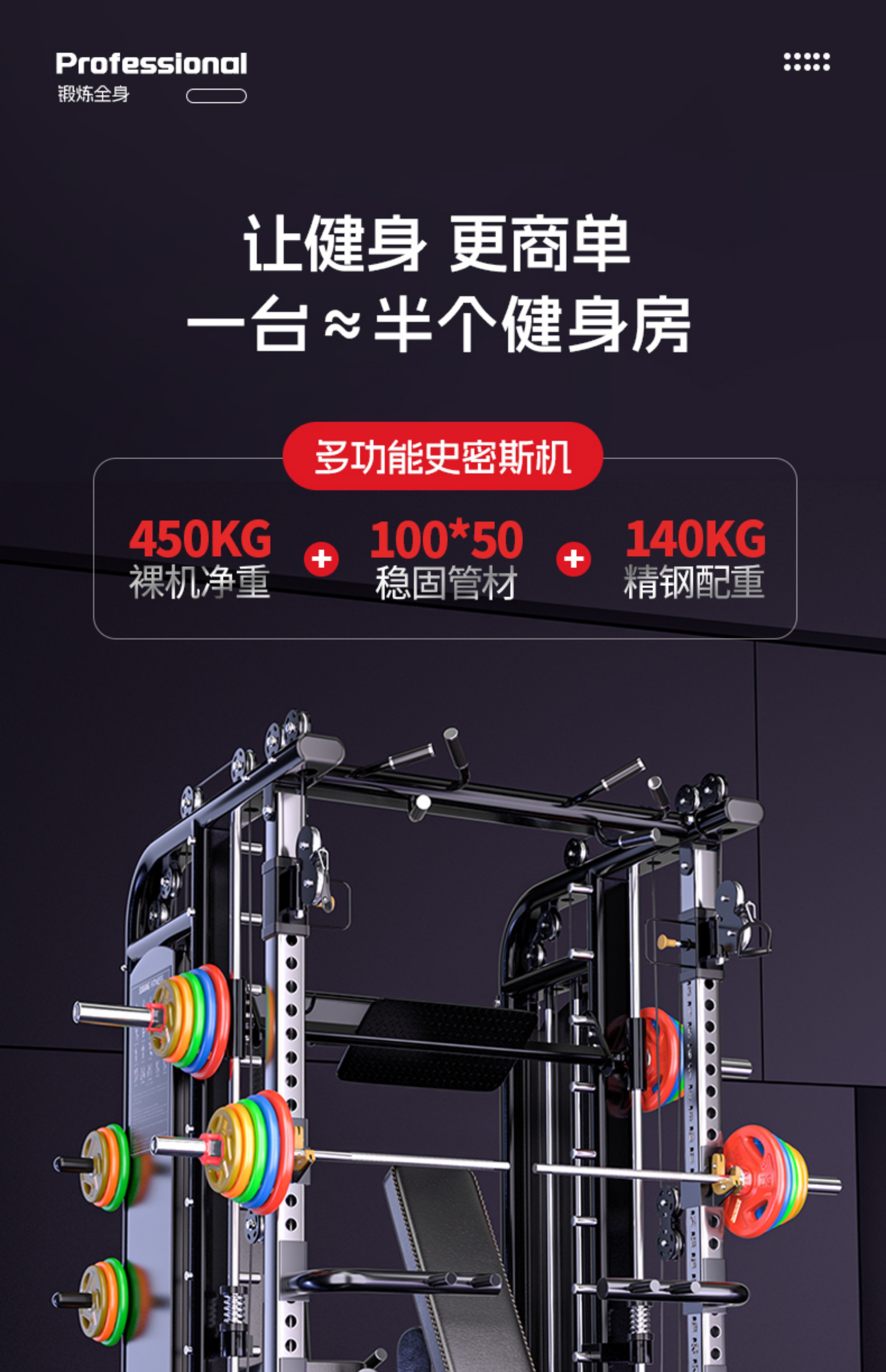 商品名称:大型商用史密斯机综合训练器材一体多功能龙门架健身家用力量器械
