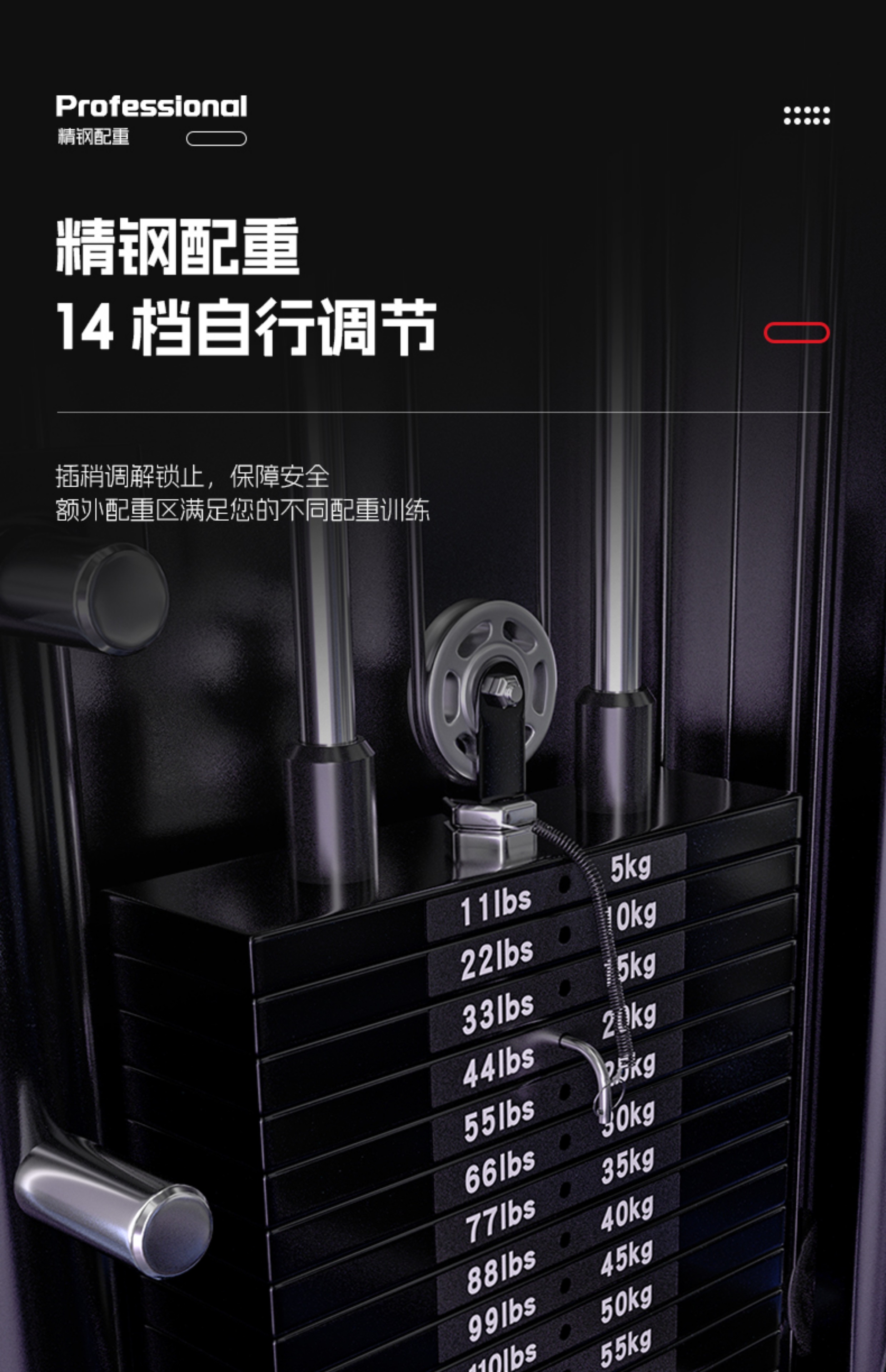 200KG精钢配重裸机+凳子+杆子210KG黑色片 定制