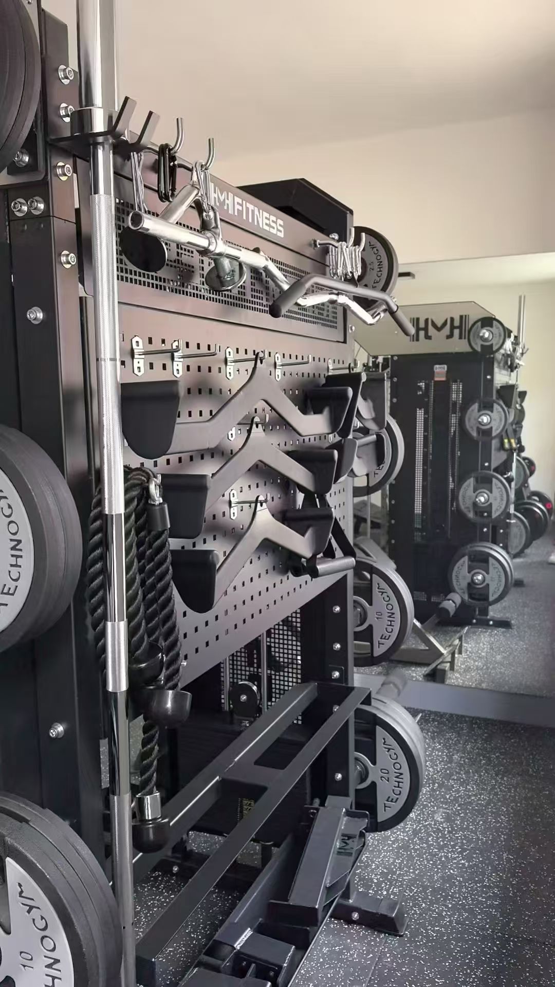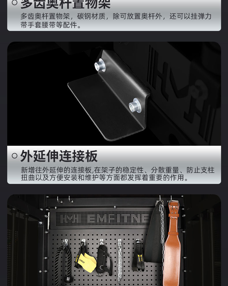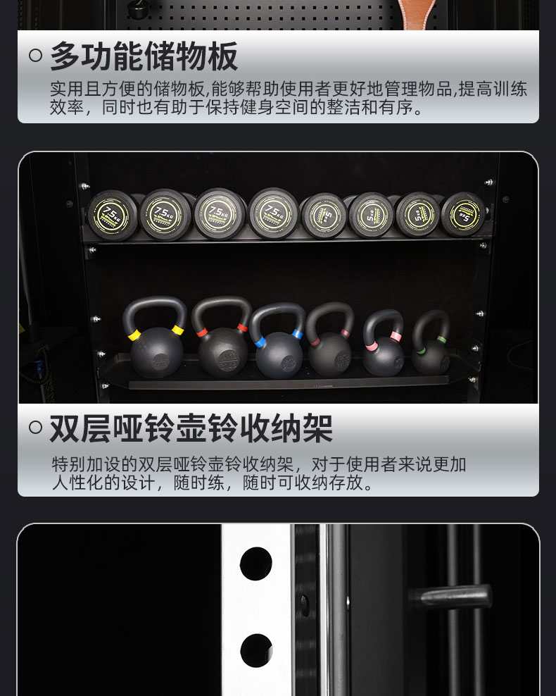 特别喜欢这个架子是因为有很多收纳位,送的把手配件我自己买的都能安排的很好。架子不错,用着很好,健身很推荐。