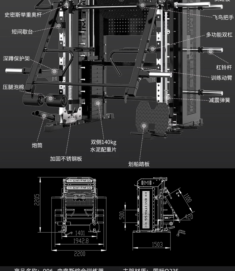 商品名称:龙门架健身器材史密斯机综合力量训练器家用专业多功能深蹲卧推架