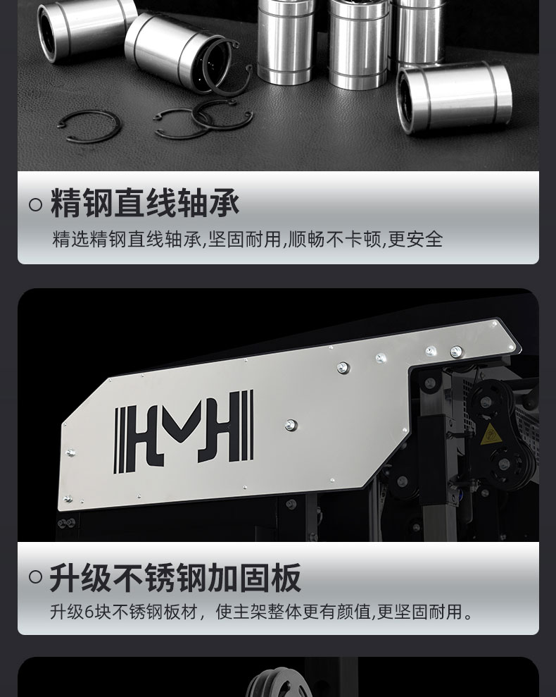 器械很稳,安装师傅上门服务的,装了几个小时,测试调整了很久没问题才走的。整体大气美观,锻炼的时候很稳固,练胸练背都非常到位,很多细节,储物设计也不错,节省了很多空间,整洁了很多,总体满意,对得起价格。