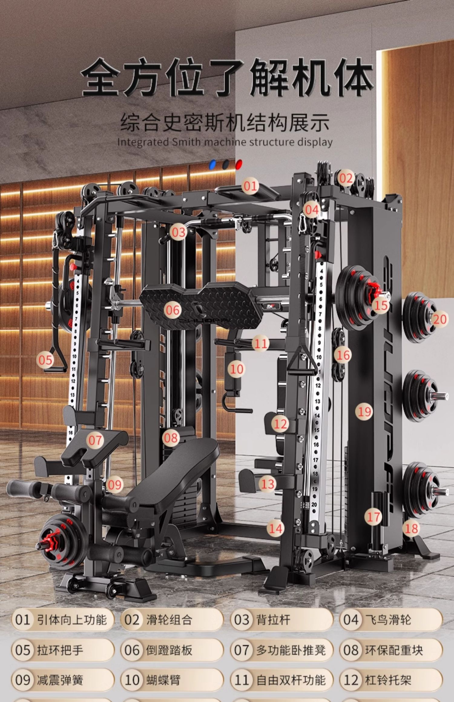 龙门架健身器材家用史密斯机一体卧推架多功能健身器械综合训练器