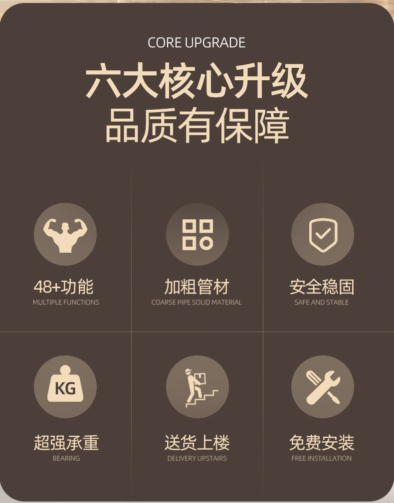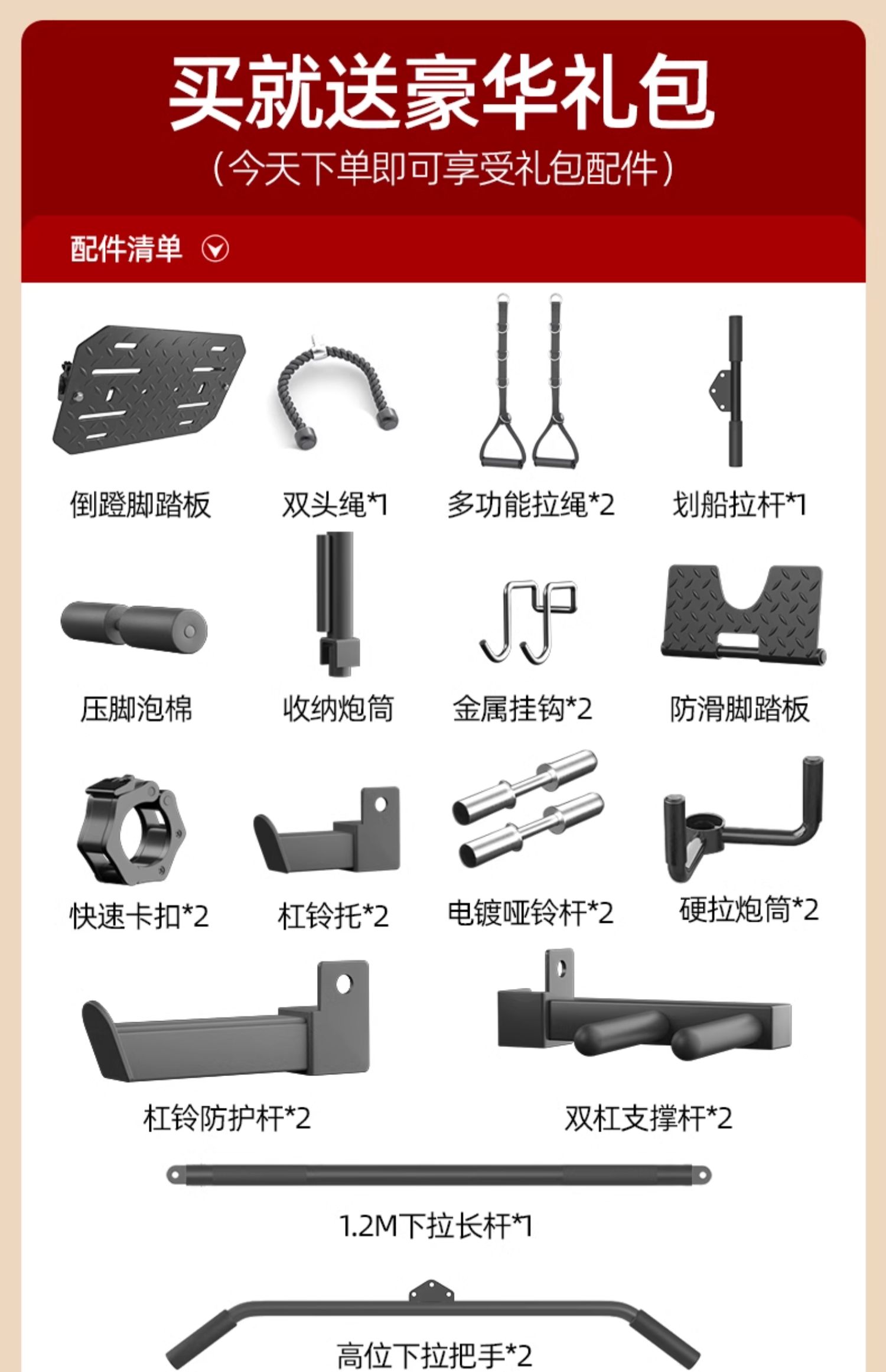 非常好的龙门架飞鸟器械,基本上涵盖了所有能练的部位,用了一段时间了,目前我还在摸索中,实话实说,真的挺好的,真材实料,各方面都满意。放家里,每天有空练一下,很方便,比去健身房方便多了。