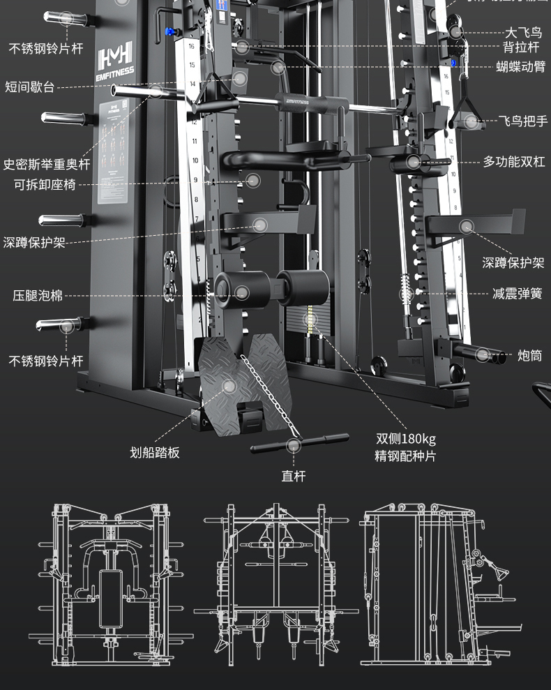 龙门架健身器材家用多功能史密斯机深蹲卧推架器械商用综合训练器