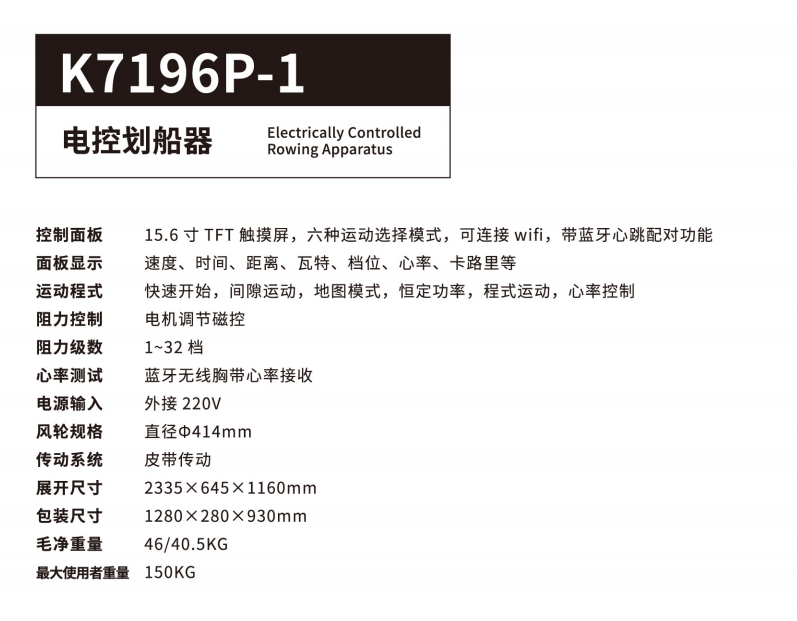 商品名称:正品康乐佳K7196P-1电控划船机家用健身坐姿划船器商用健身房专业