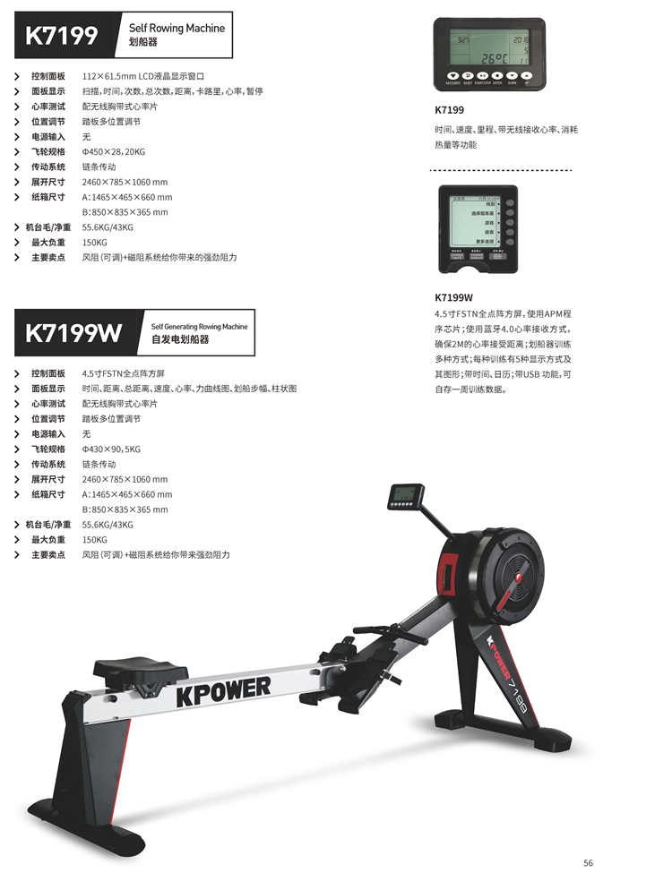商品名称:康乐佳KPOWER高端商用划船器K7199健身房专业运动豪华风阻划船机