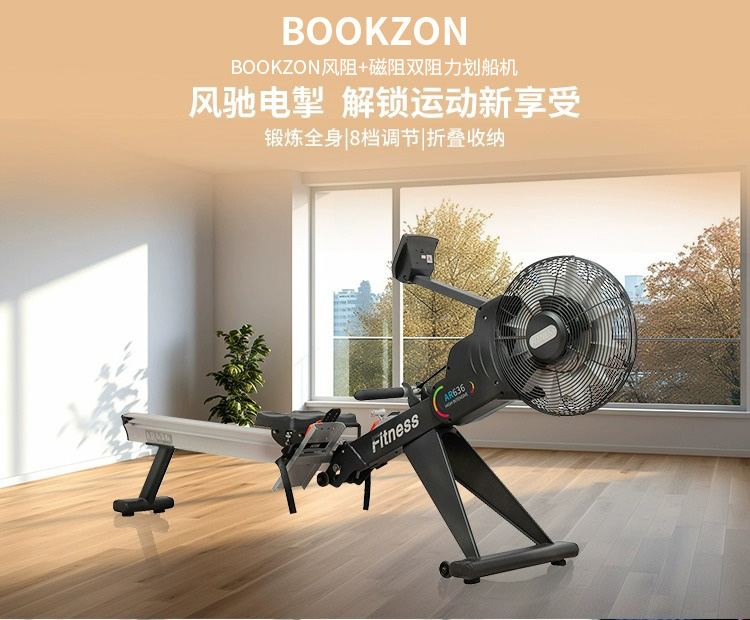 BOOKZON风阻划船机家用有氧商用级运动划桨健身赛艇测功仪划船器
