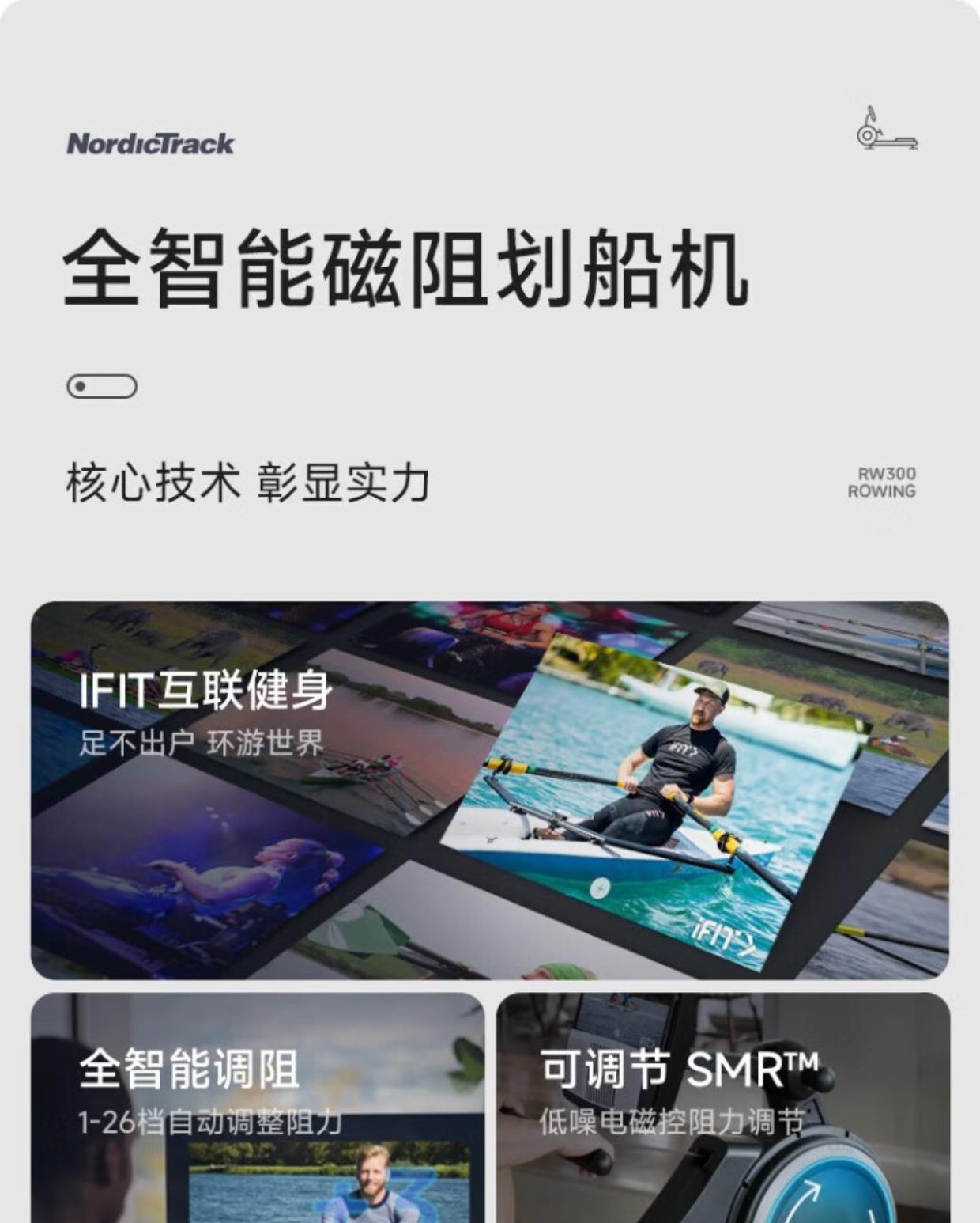 商品名称:ICON爱康划船机电控划船器家用静音智能健身器室内有氧运动RW300