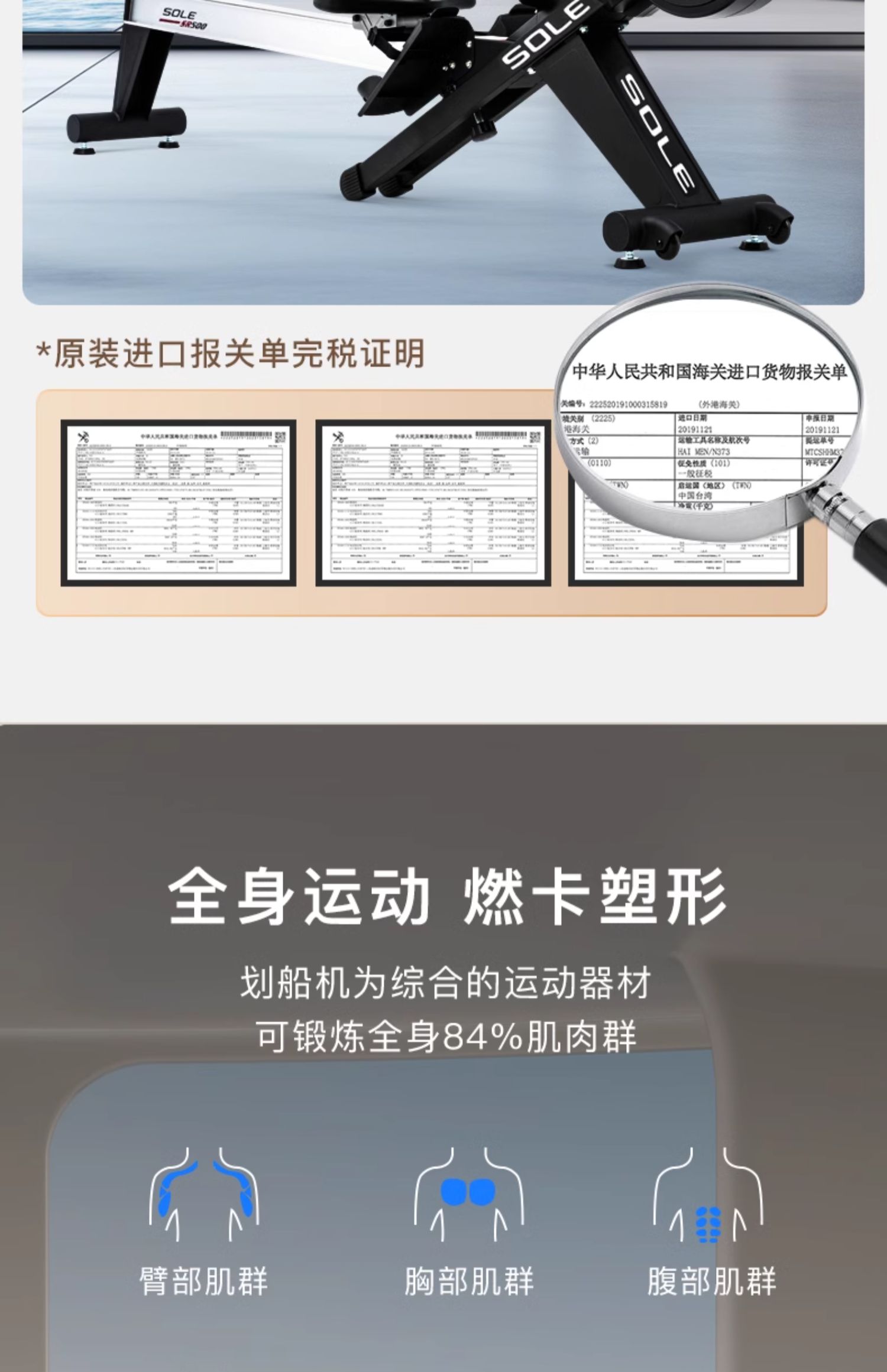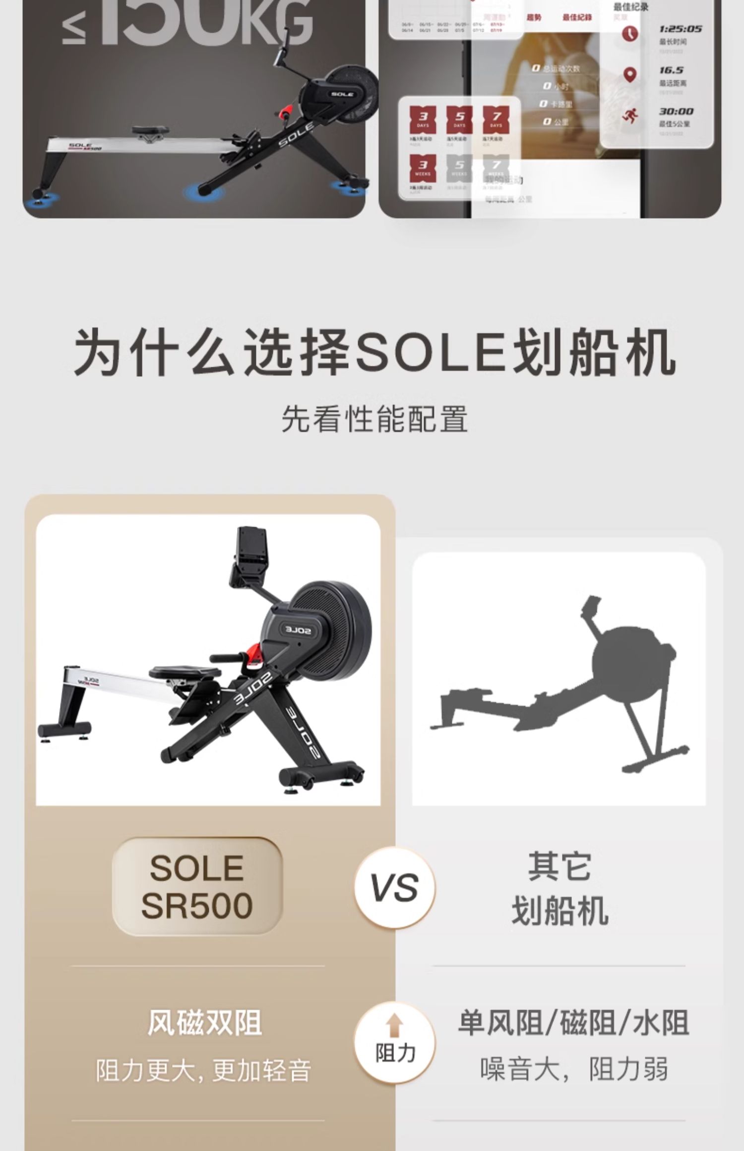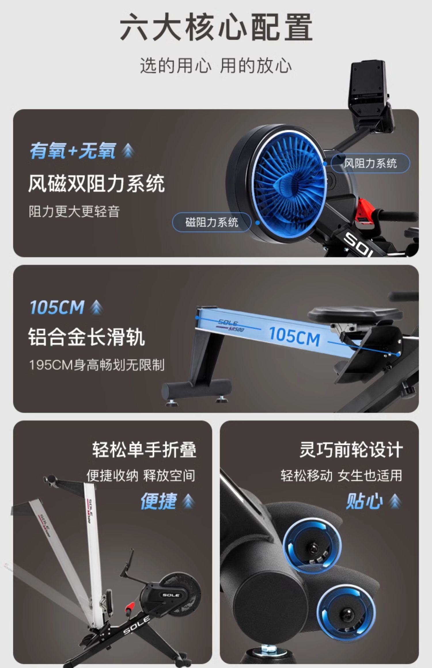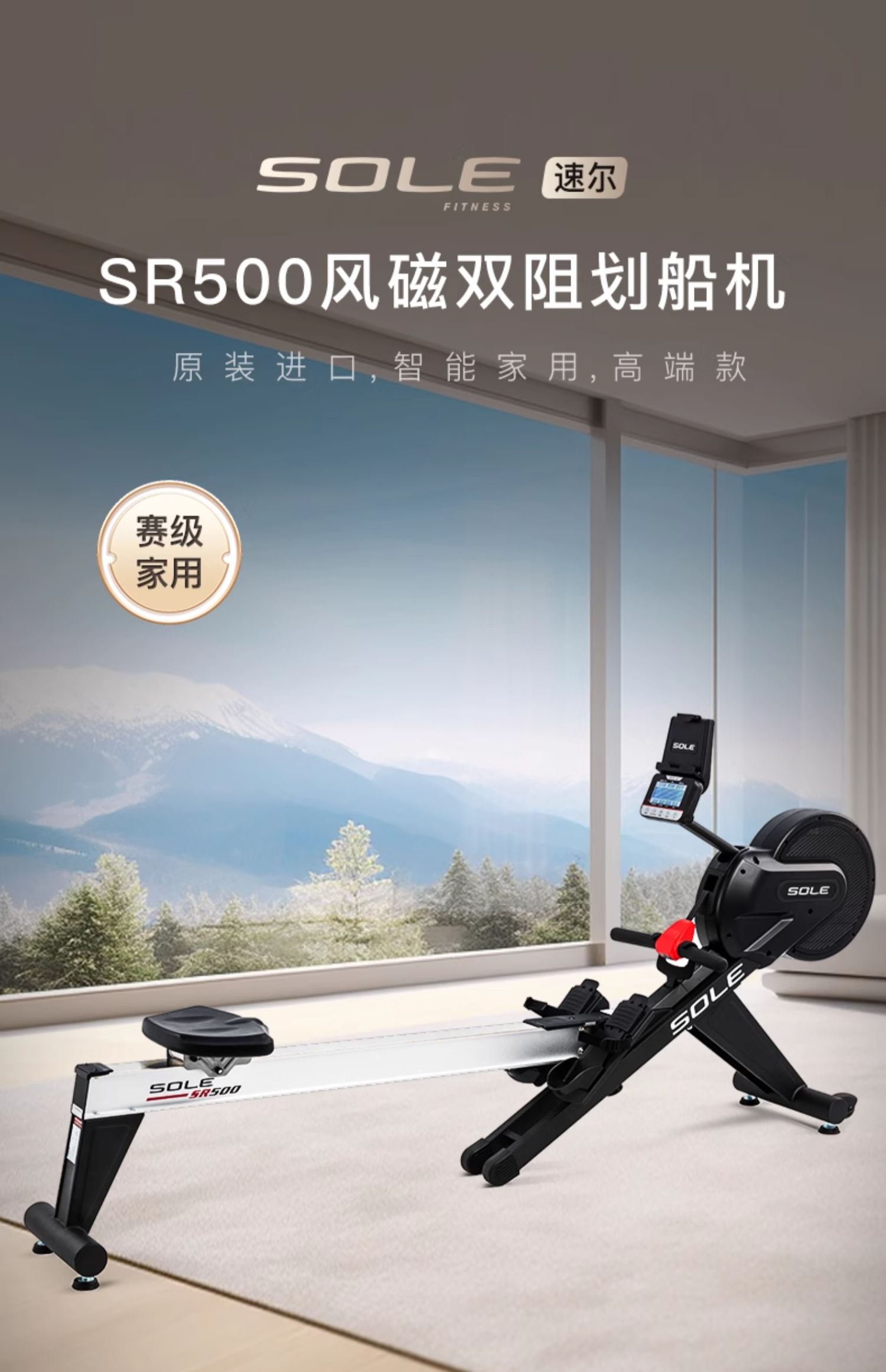 商品名称:美国sole速尔SR500风磁双阻划船机家用静音双轨折叠进口健身器