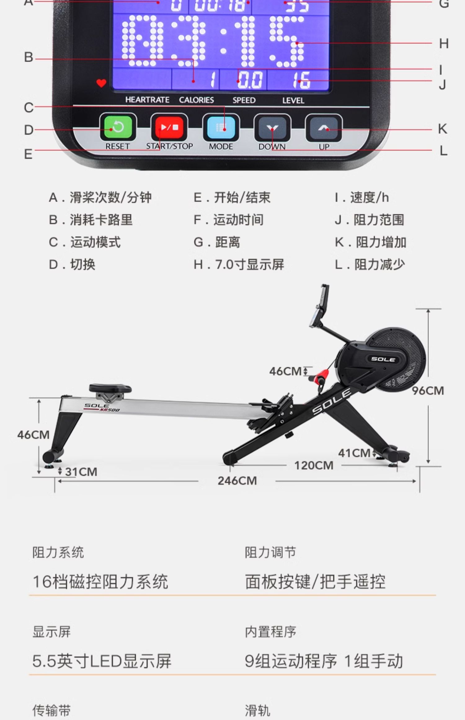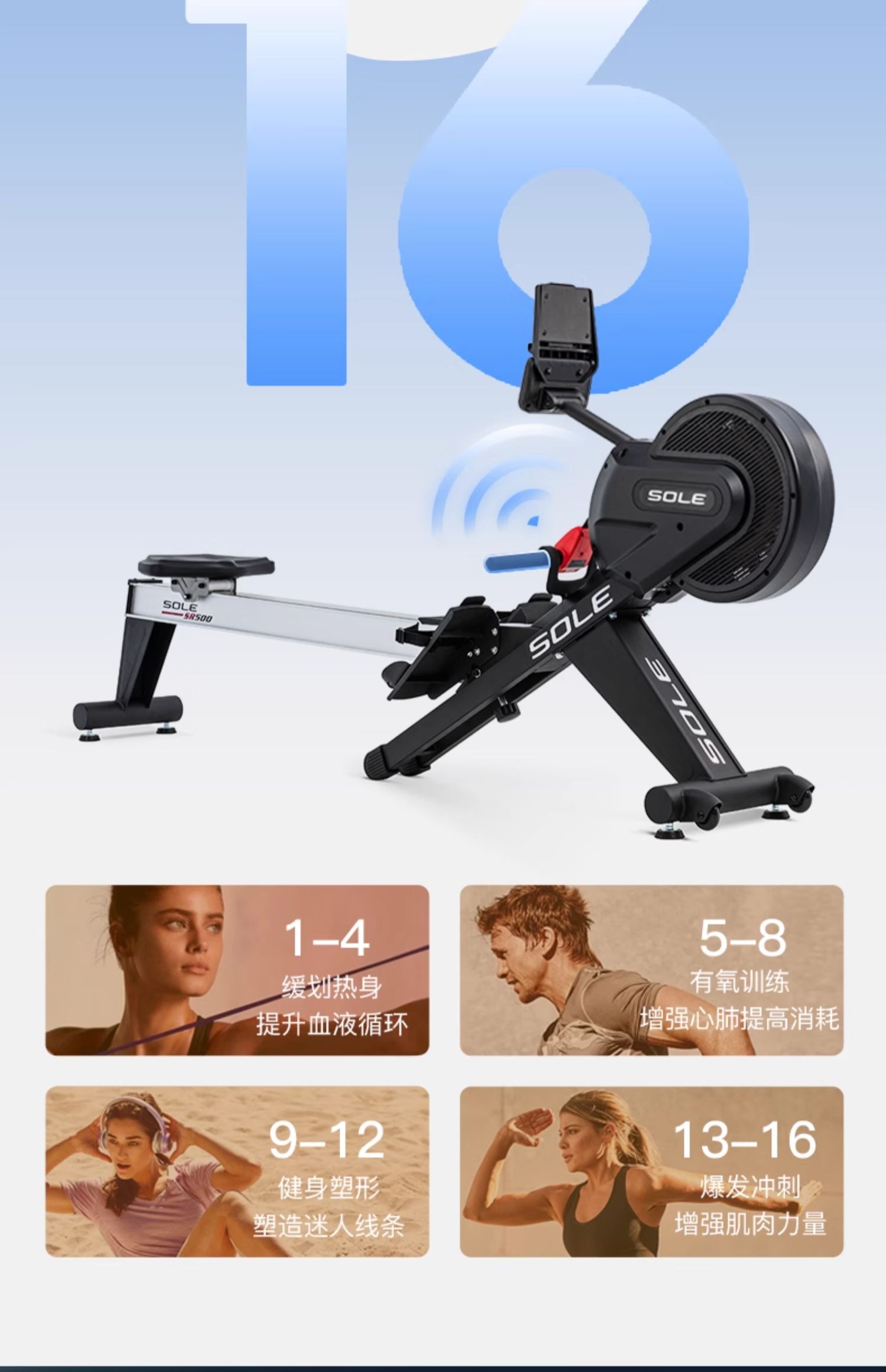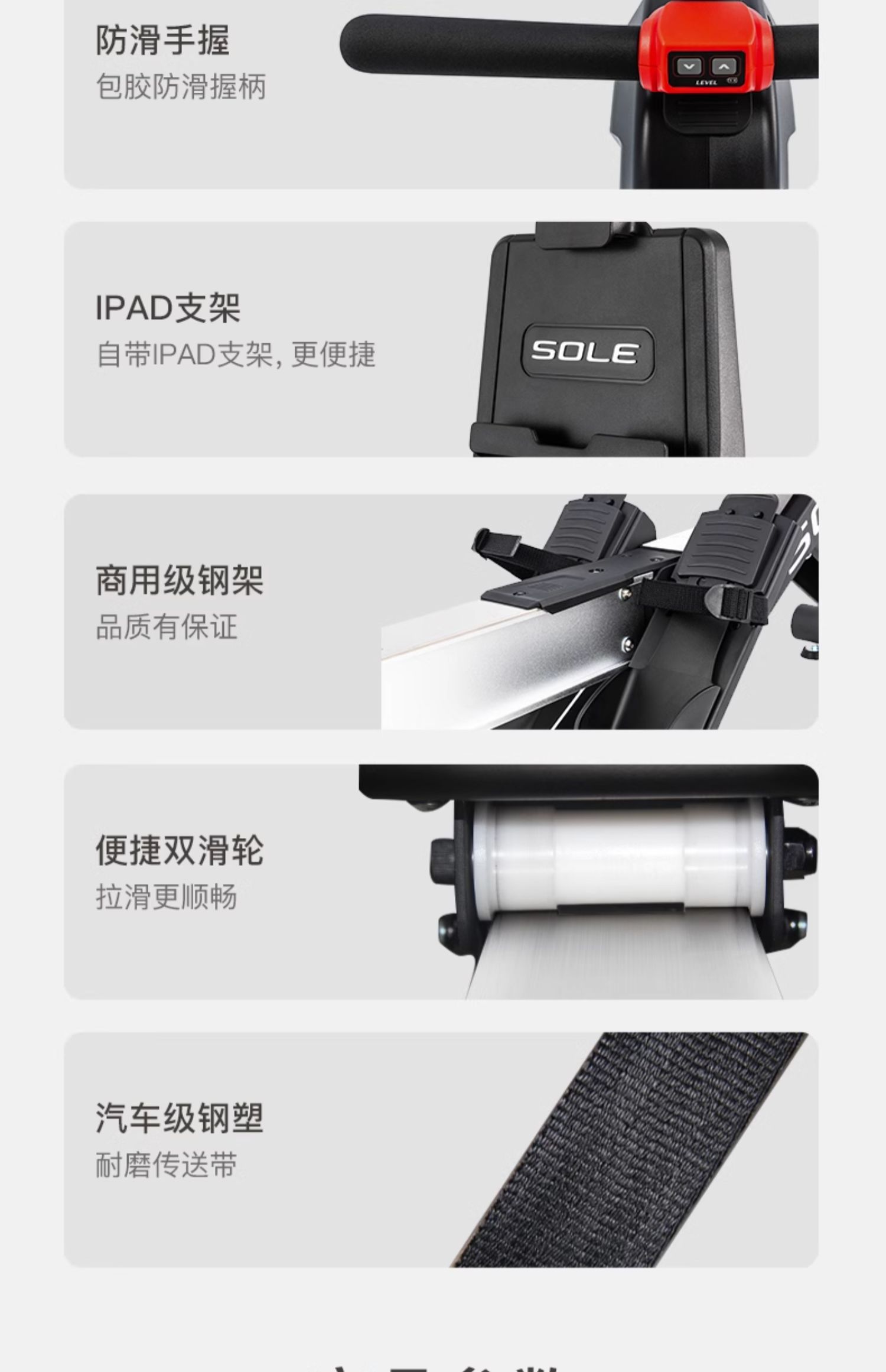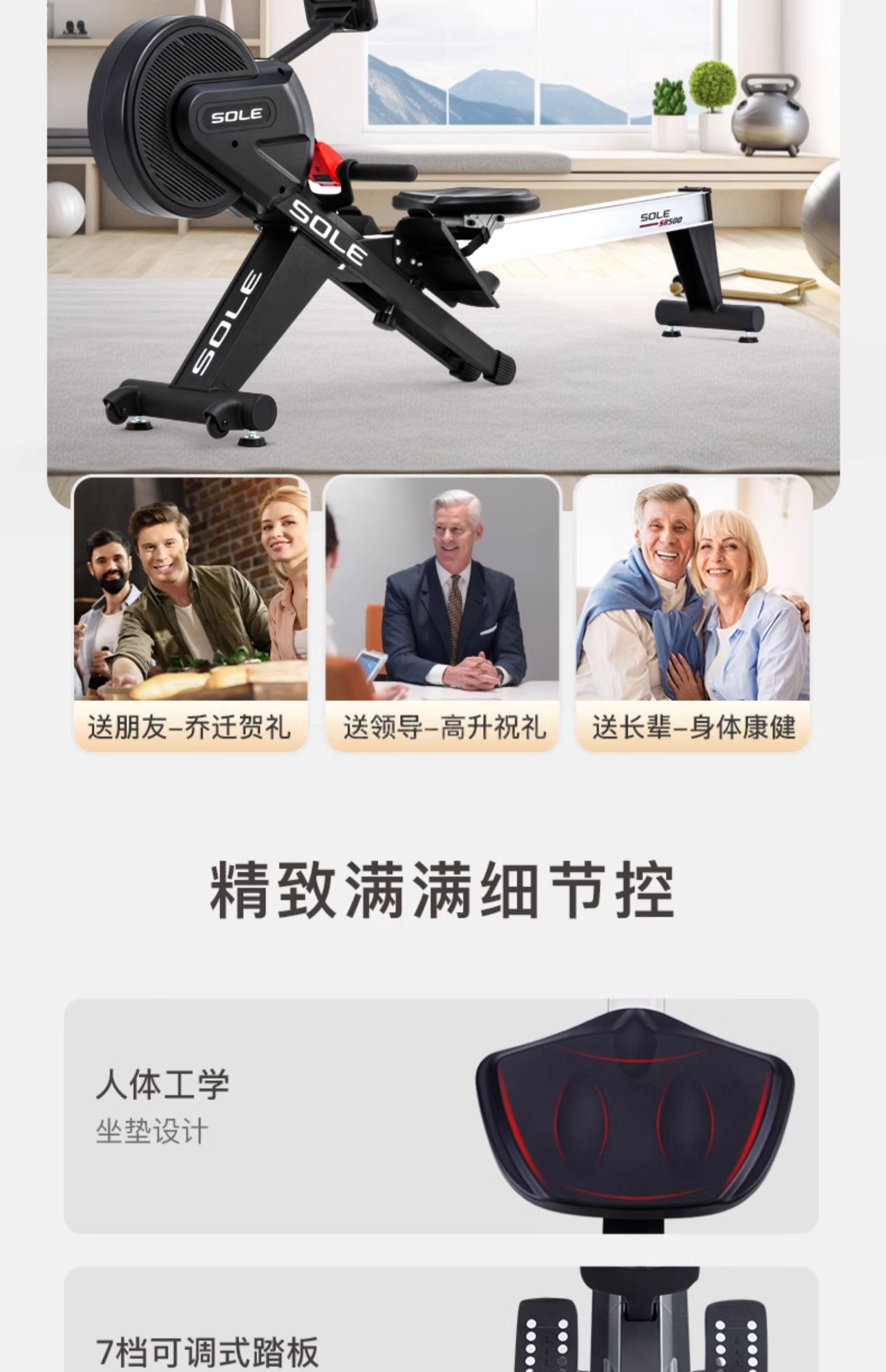 商品名称:美国sole速尔SR500风磁双阻划船机家用静音双轨折叠进口健身器