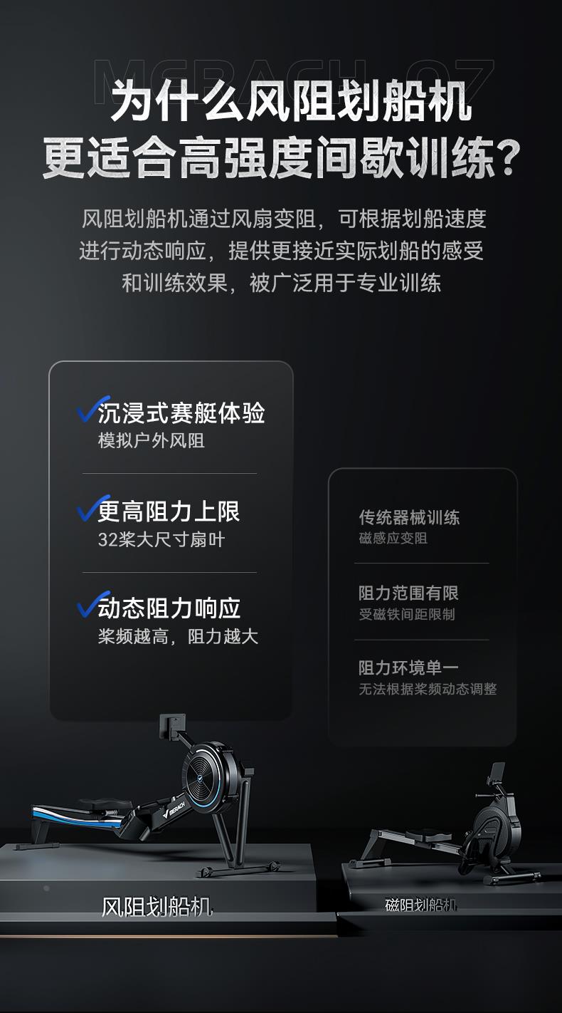 麦瑞克风阻划船机家用有氧商用级赛艇测功仪运动划桨健身划船器Q7