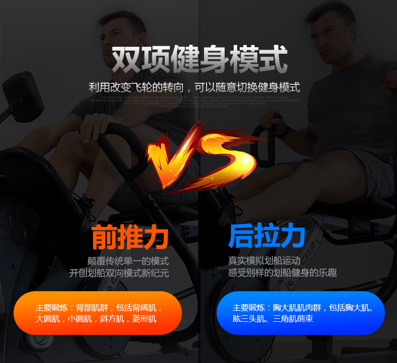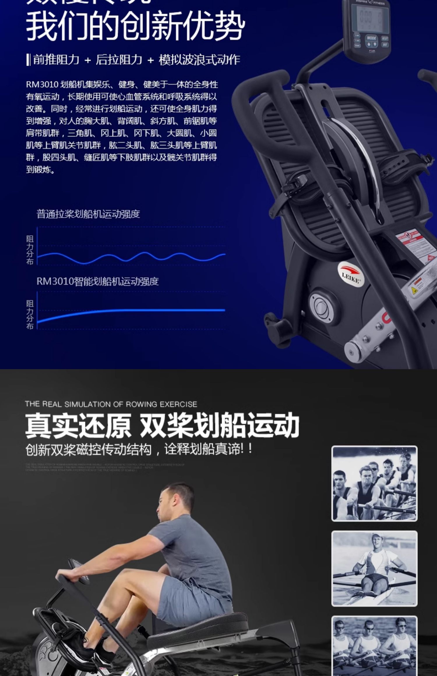 雷克双桨划船机商用专业划艇机家用拉背健身运动器磁控静音