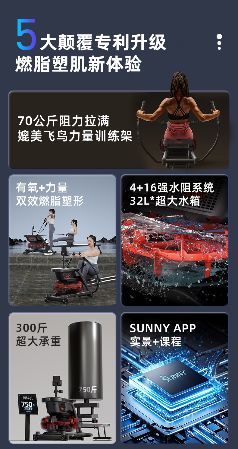商品名称:美国SUNNY水阻划船机双桨轻商用健身器械家用室内减肥燃脂锻炼
