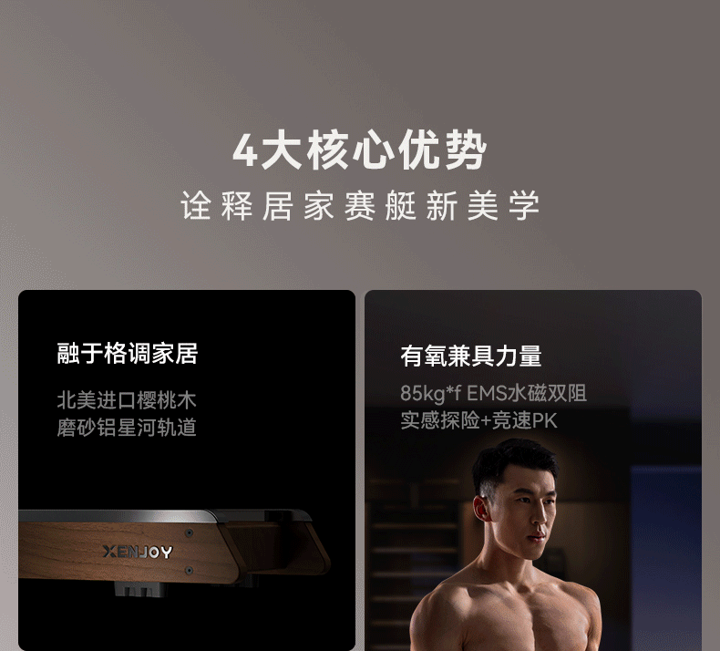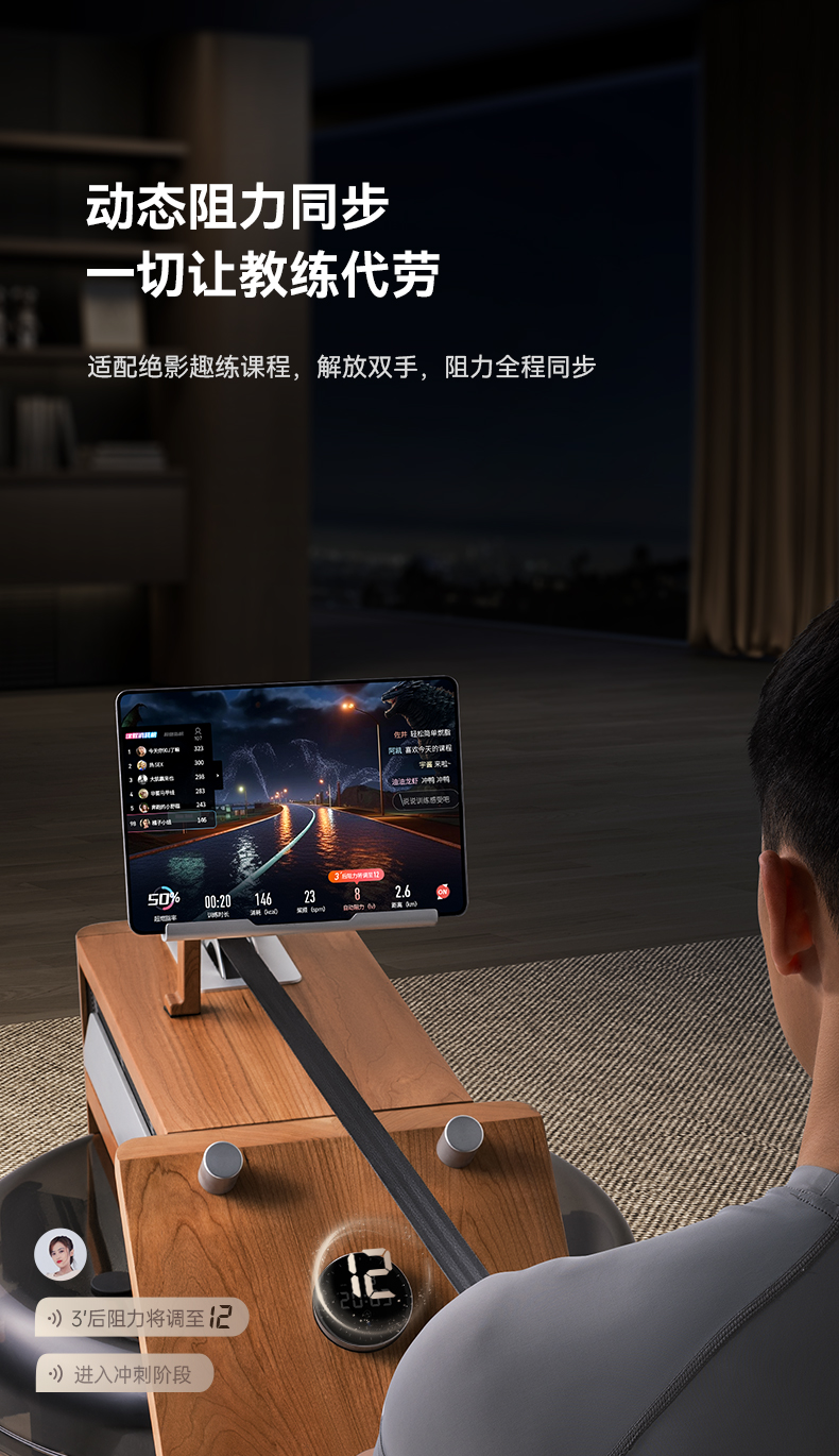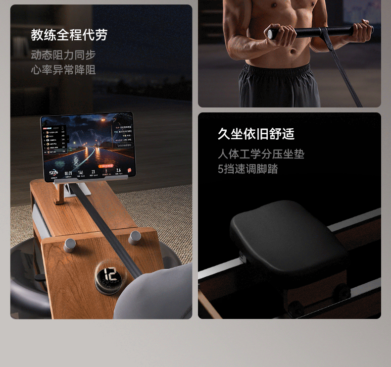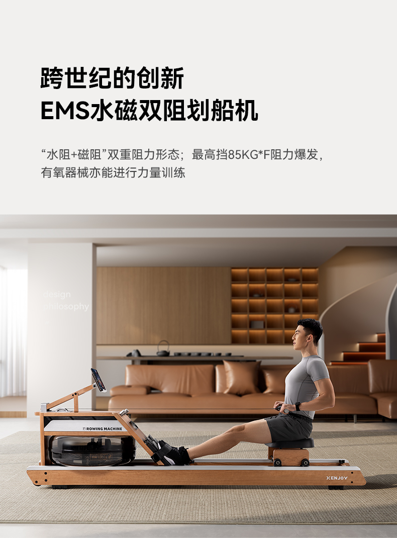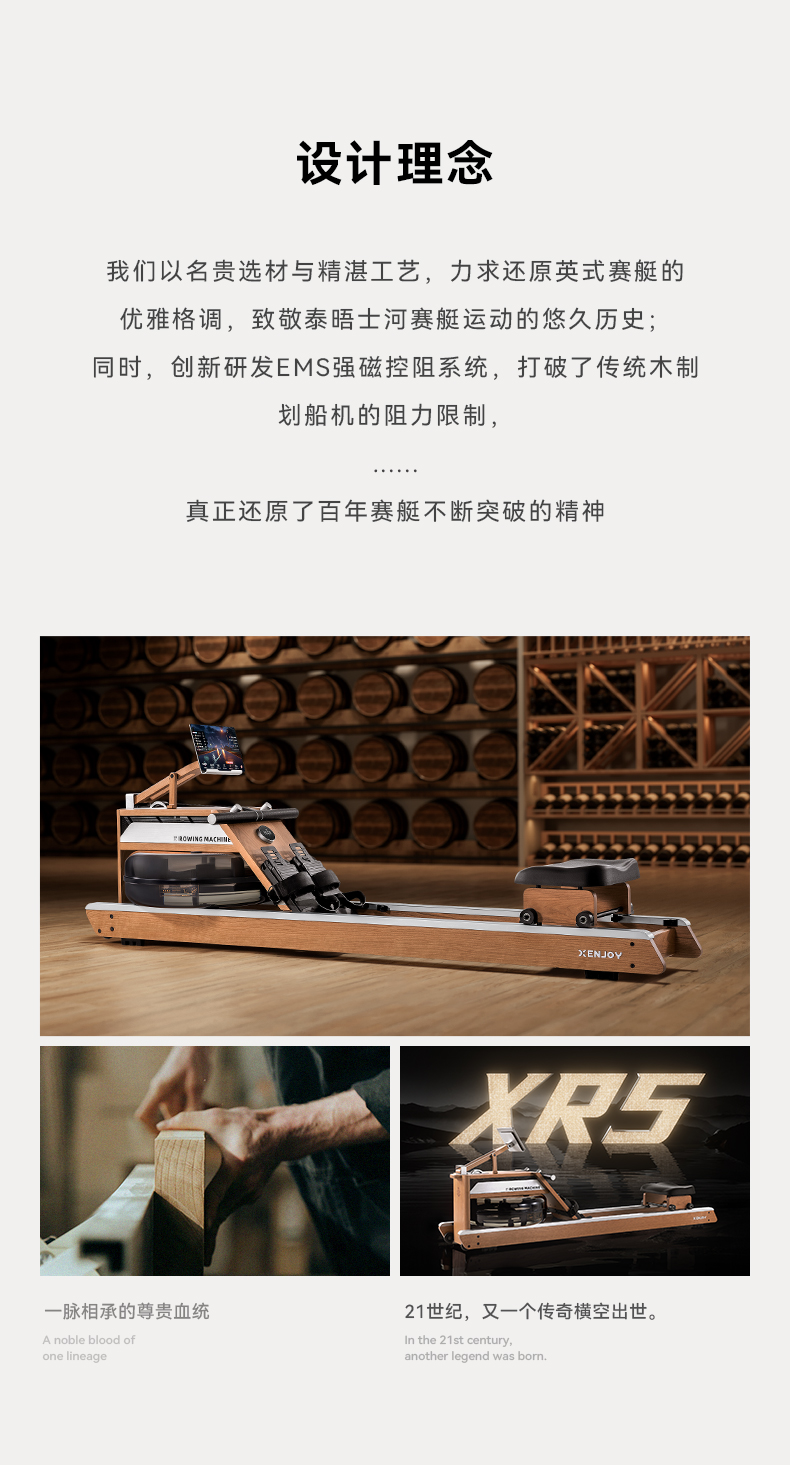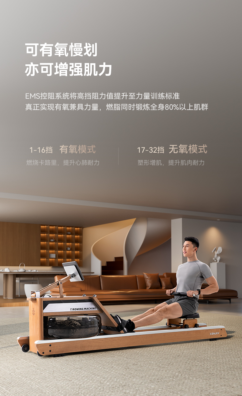 商品名称:绝影高端EMS水磁双阻划船机XR5家用健身房器材有氧无氧健身樱桃木