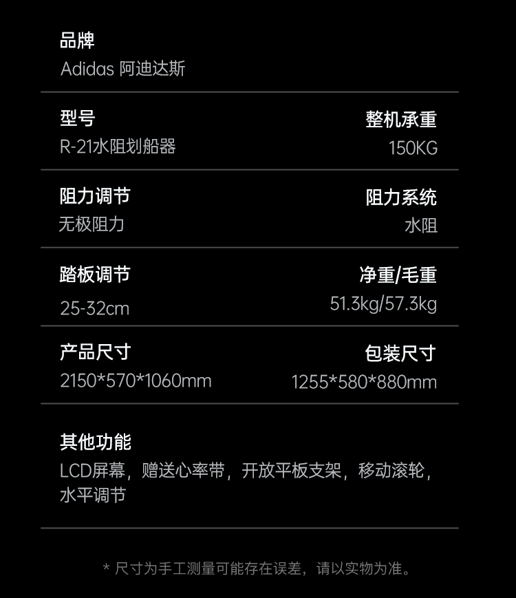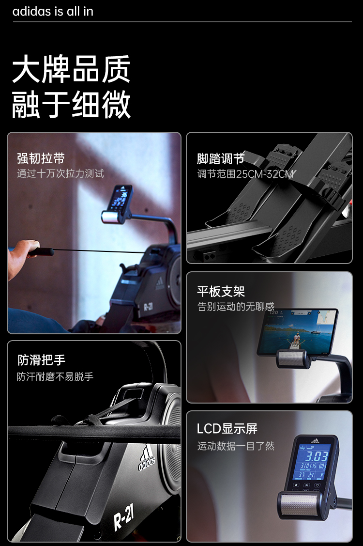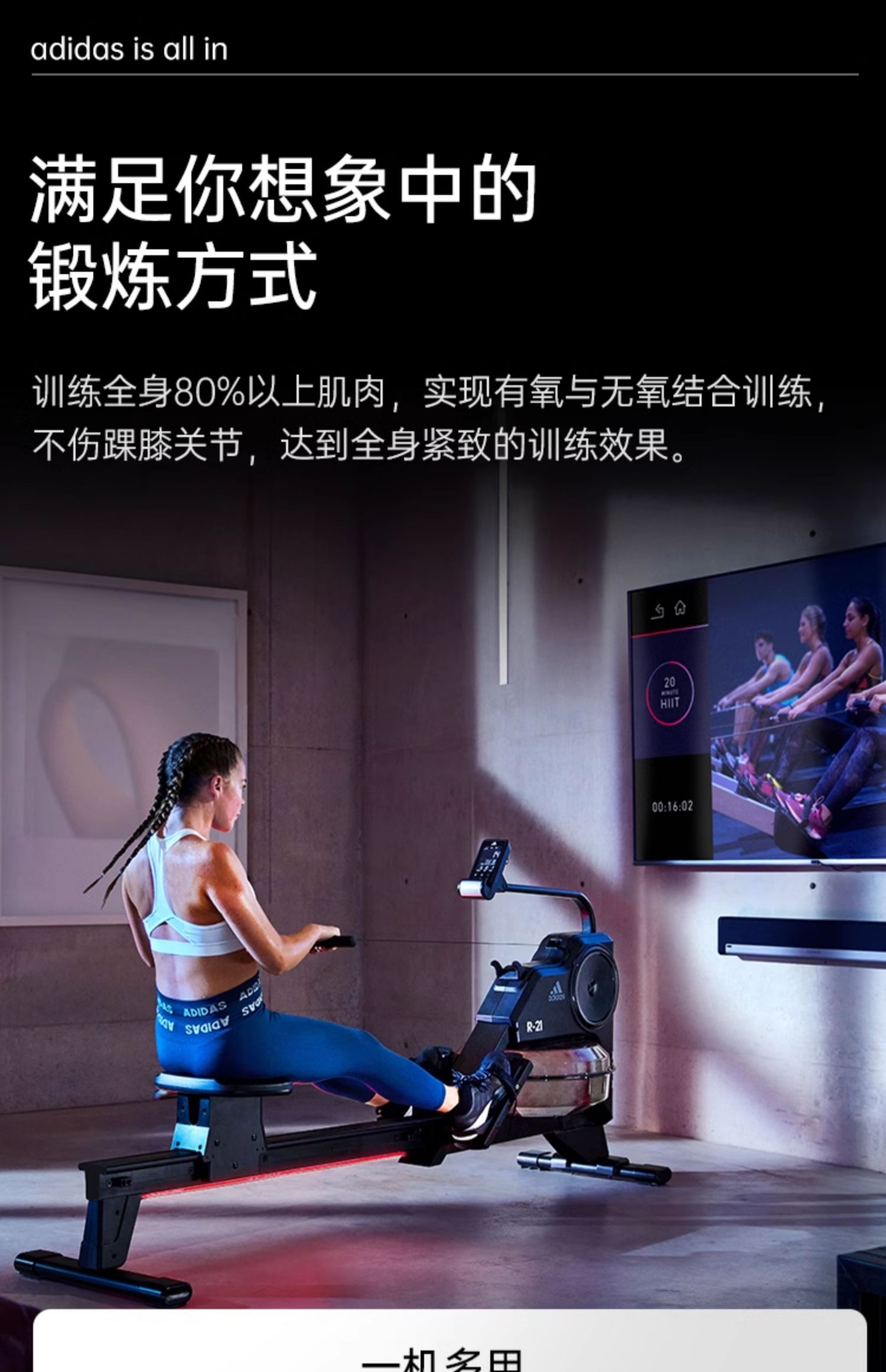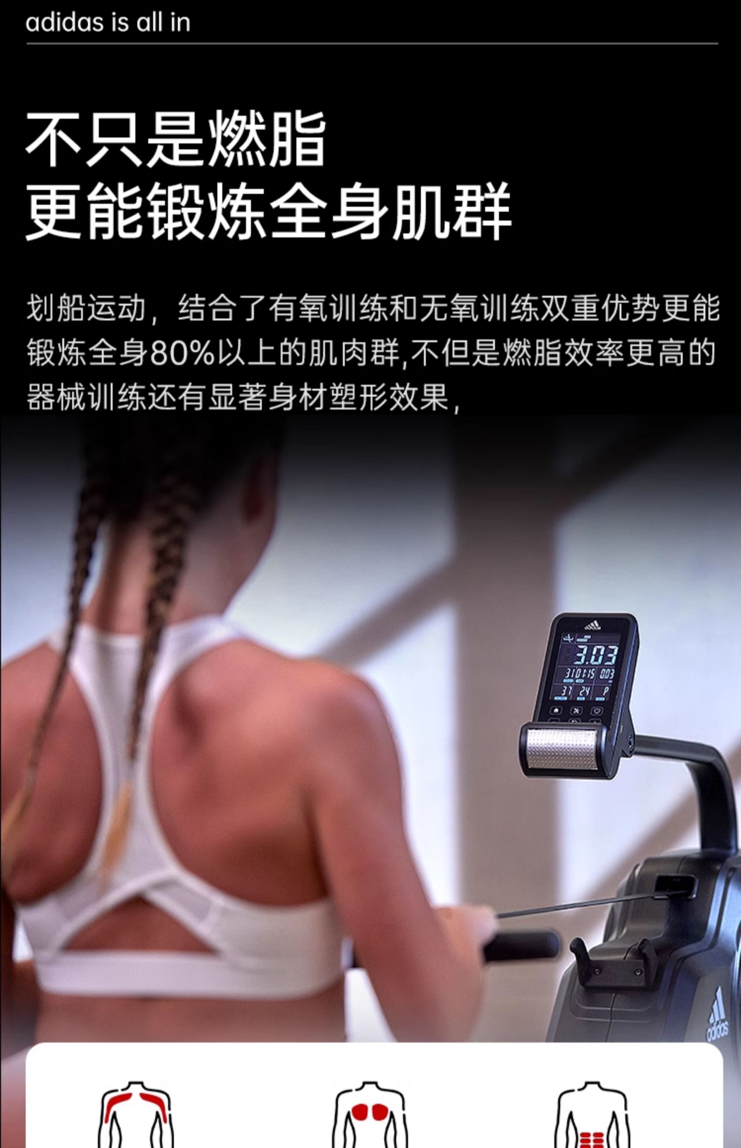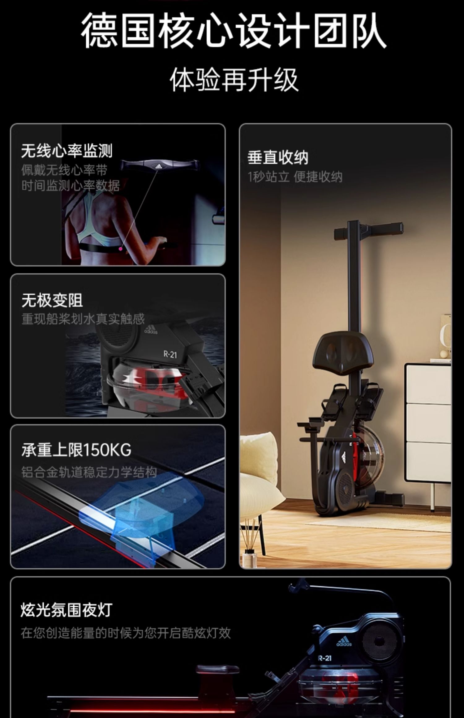 商品名称:adidas阿迪达斯划船机水阻有氧运动自发电划船器健身器材划船机