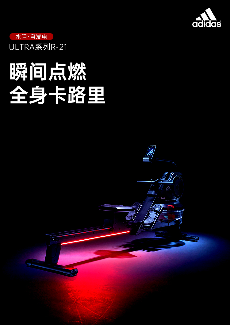 adidas阿迪达斯划船机水阻有氧运动自发电划船器健身器材划船机