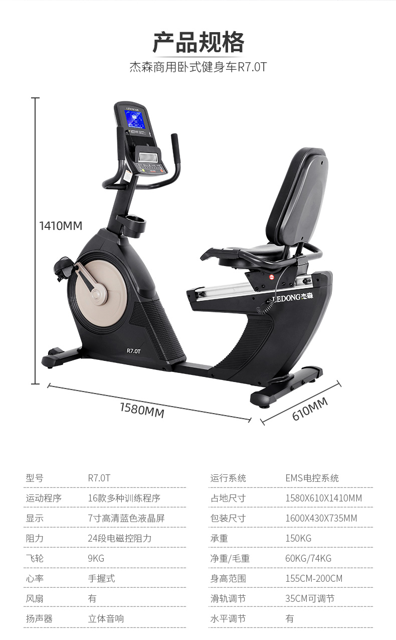 商品名称:杰森卧式健身车家用动感单车轻商用电磁控智能静音脚踏车健身器材
