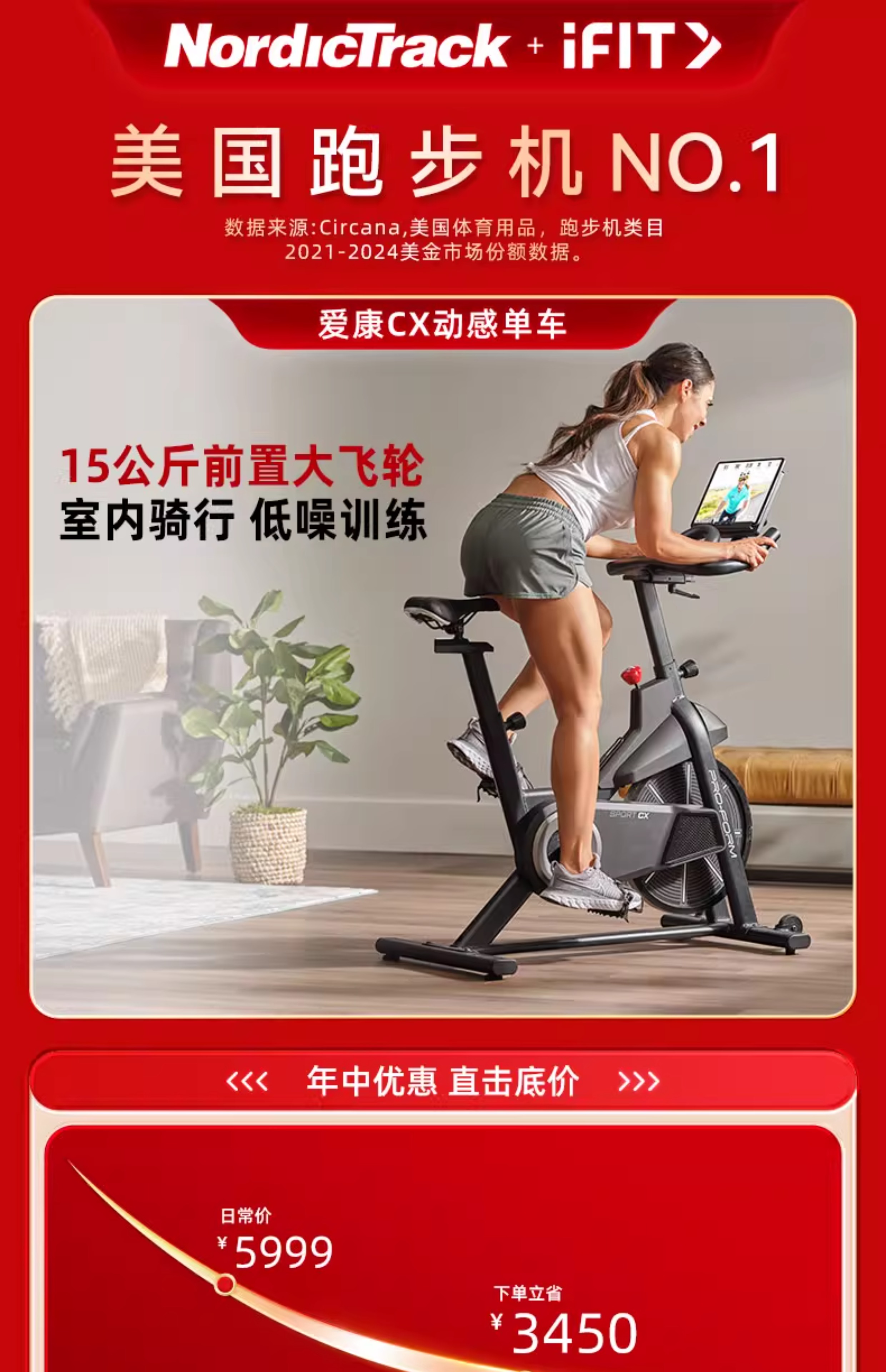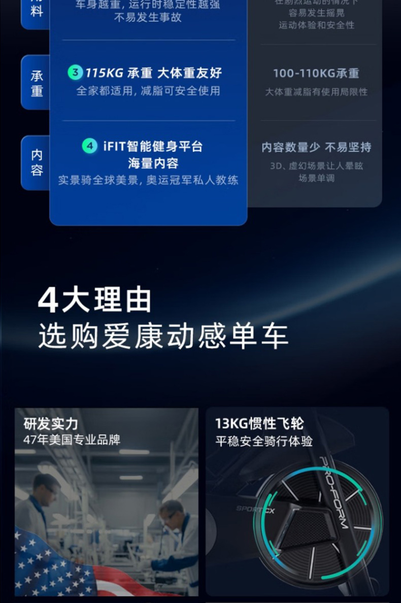 商品名称:美国爱康动感单车家用室内静音款健身车脚踏原地车自行车SportCX
