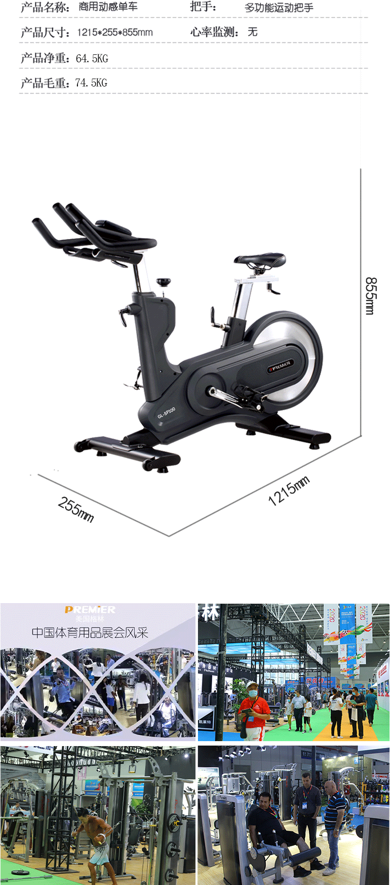商品名称:PREMIER/美国格林健身房商用动感单车后置飞轮健身车