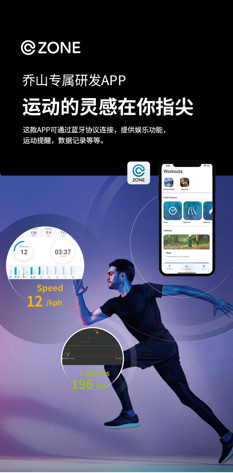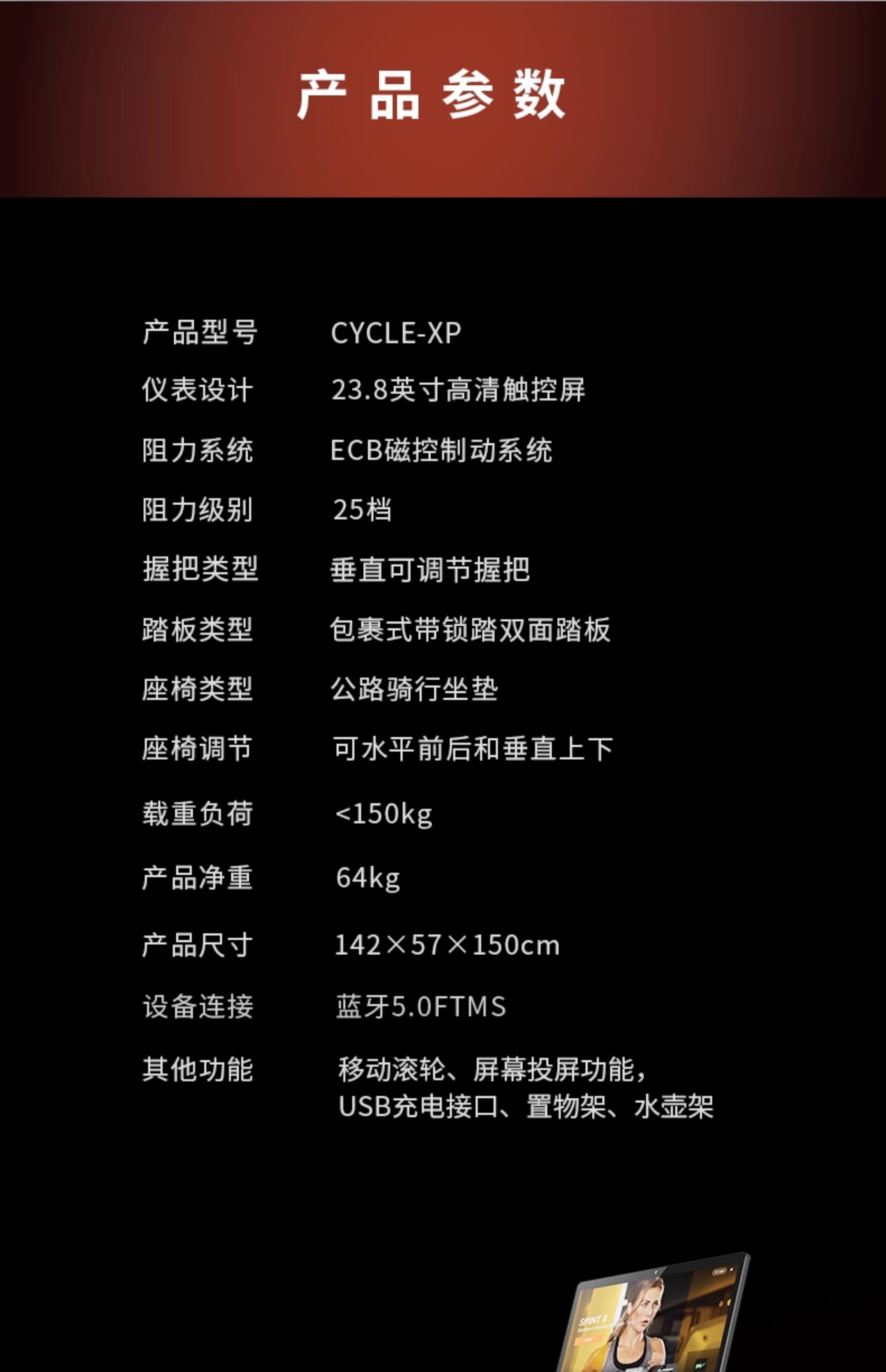 商品名称:乔山家用动感单车智能健身车健身房商用器材可旋转彩屏CYCLE-XP