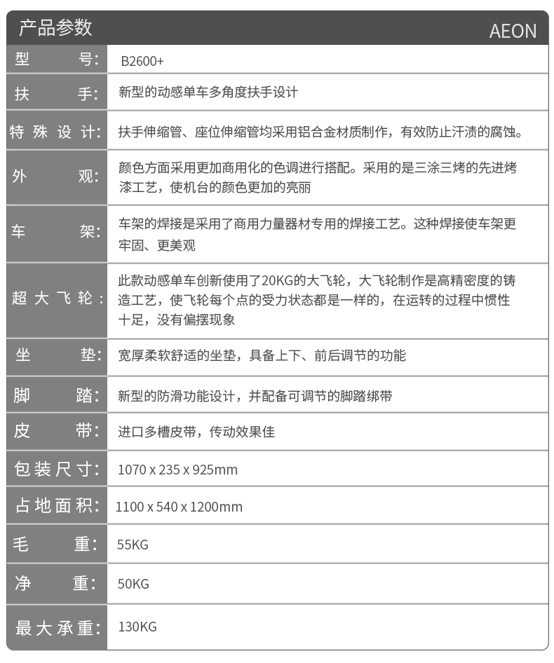 商品名称:AEON正伦B2600+商用动感单车家用室内静音健身车健身房器材