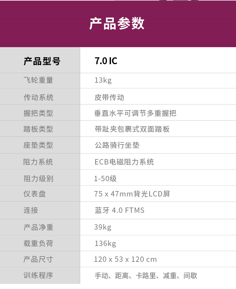 商品名称:乔山动感单车家用7.0IC室内专业健身自行车磁控阻力小型