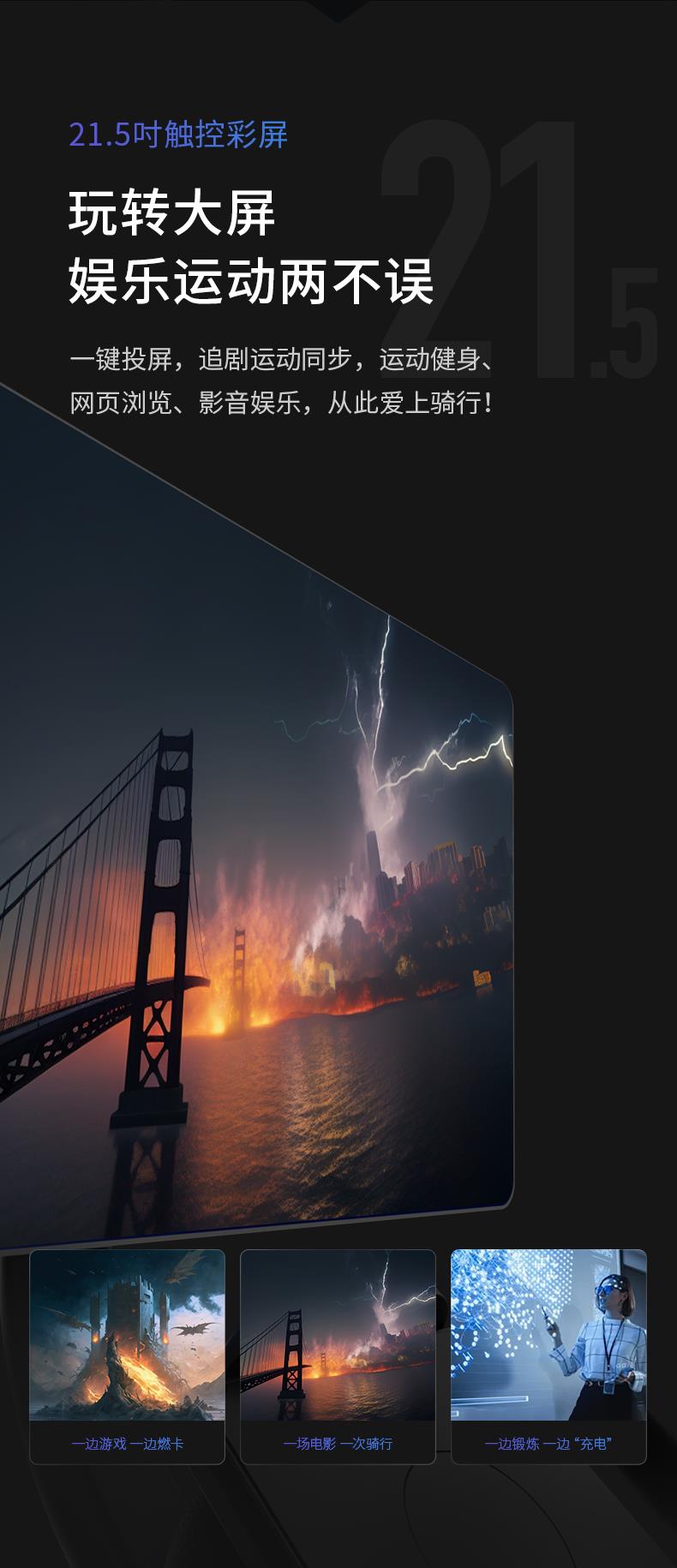 商品名称:AR竞技动感单车德国品质精钢机身AI训练计划客厅沉浸式骑行器材