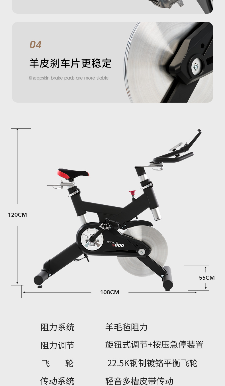 商品名称:美国sole速尔S800进口动感单车家用磁控静音室内自行车商用健身房