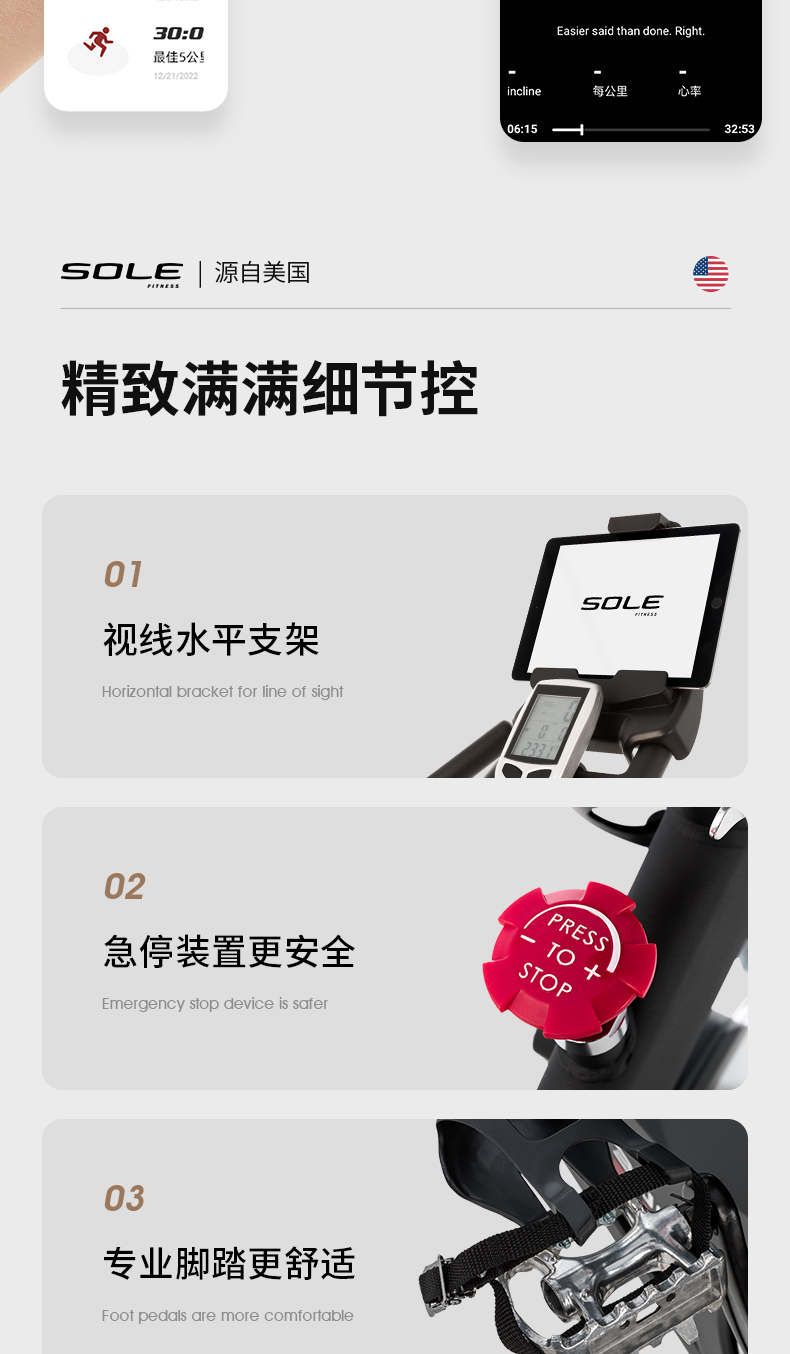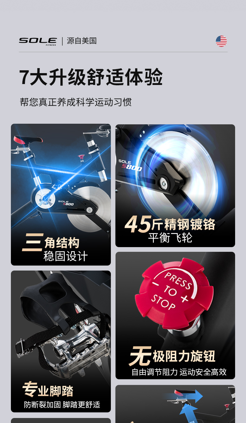 美国sole速尔S800进口动感单车家用磁控静音室内自行车商用健身房