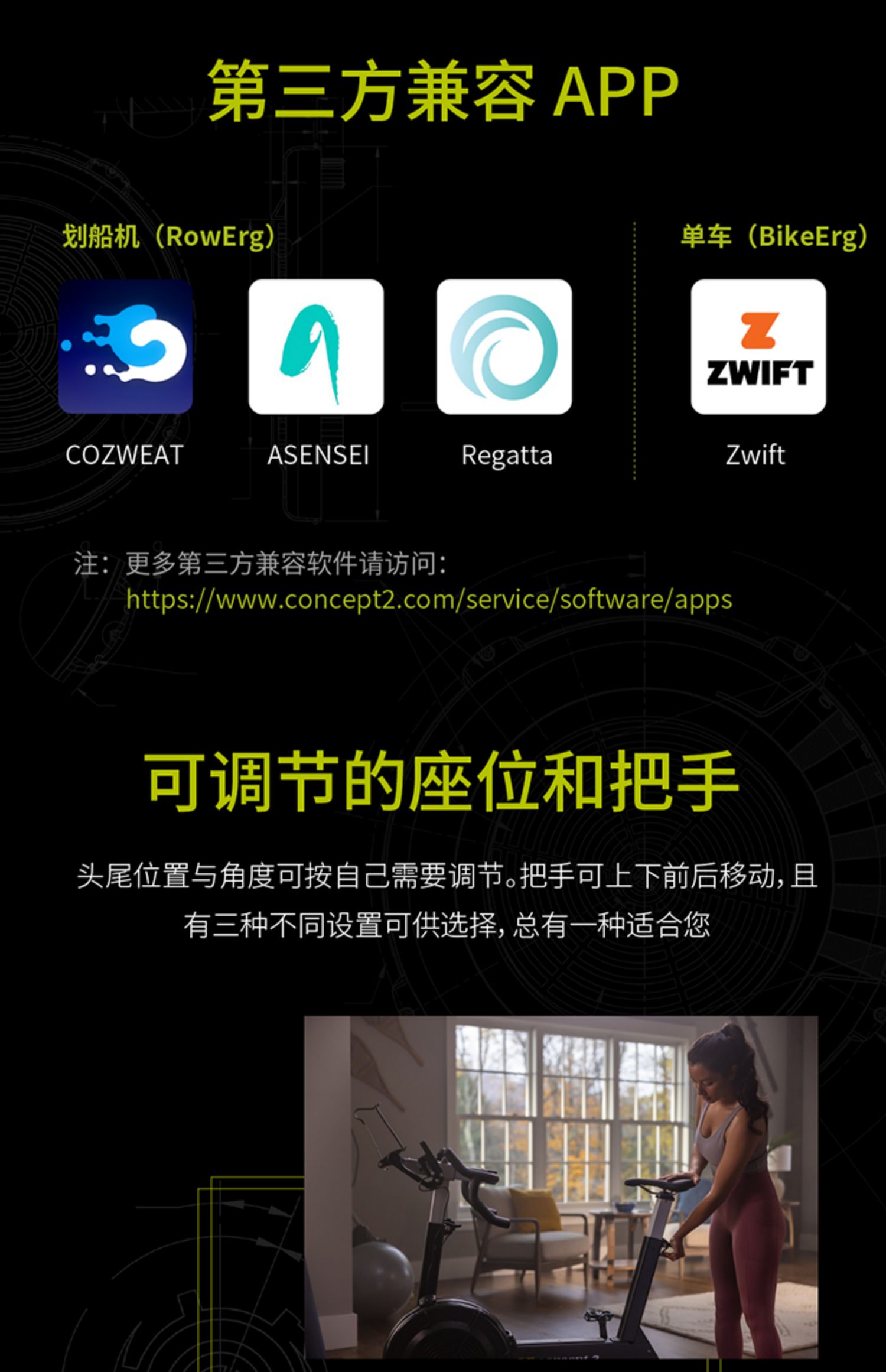 商品名称:【美国品牌动感单车】concept2风阻动感单车智能家用商用均可使用